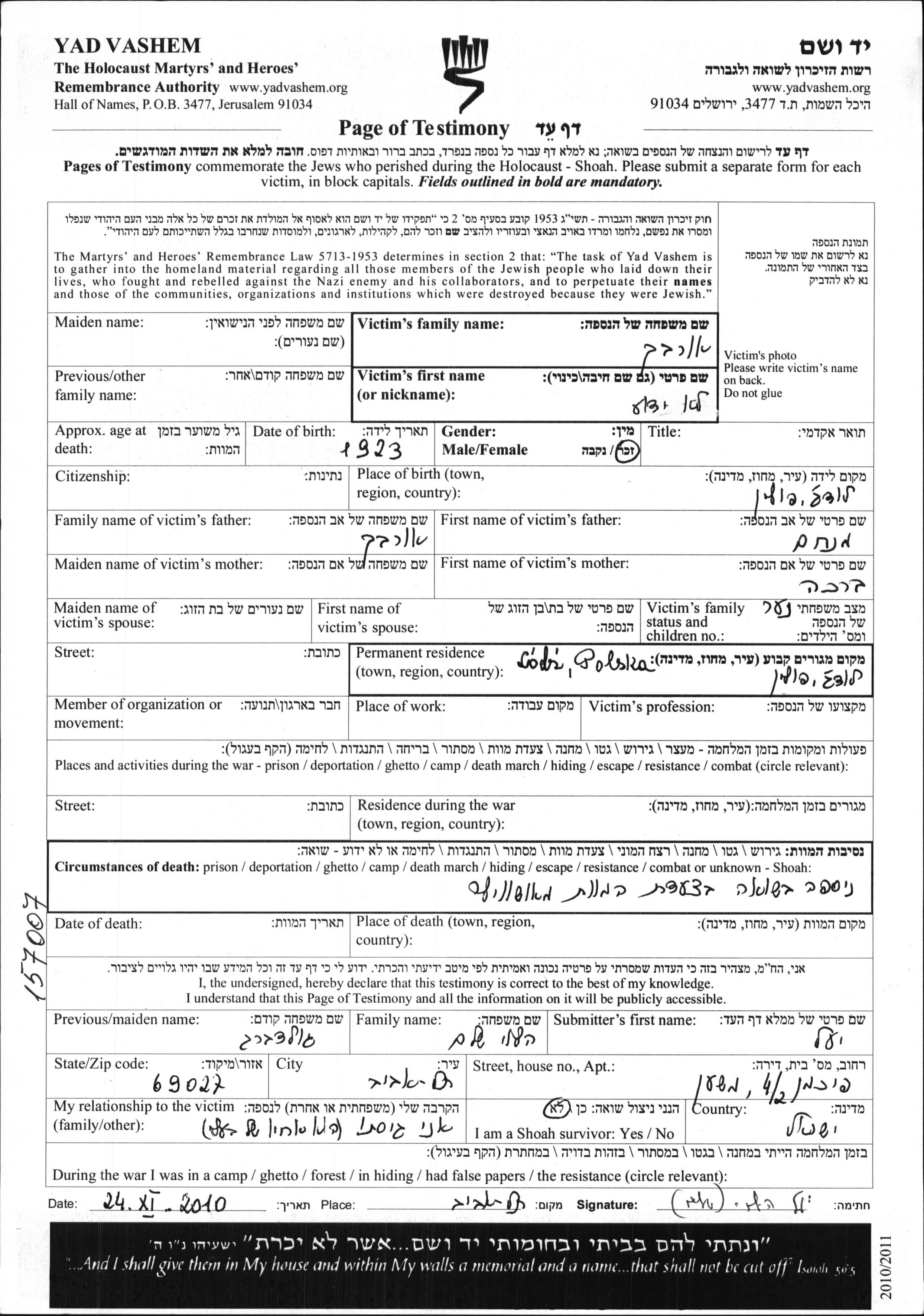 Er wurde in der Schoah ermordet. Todesort: Polen.