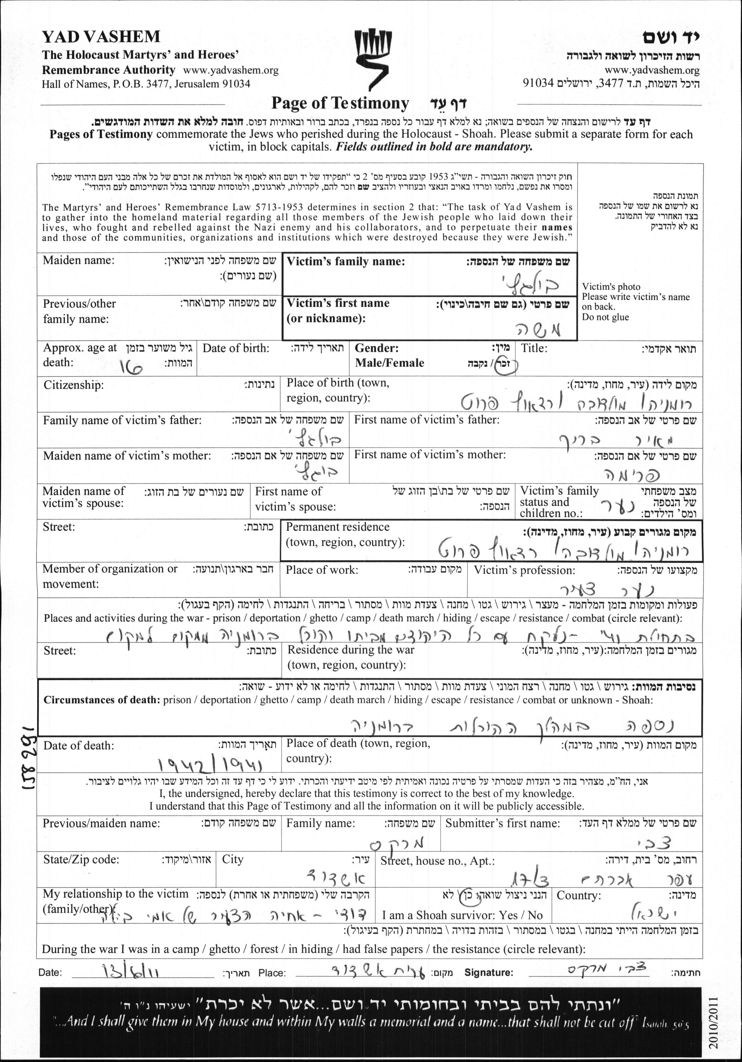 Moshe wurde in der Schoah ermordet. Todesort: Rumänien im Jahr 1941.