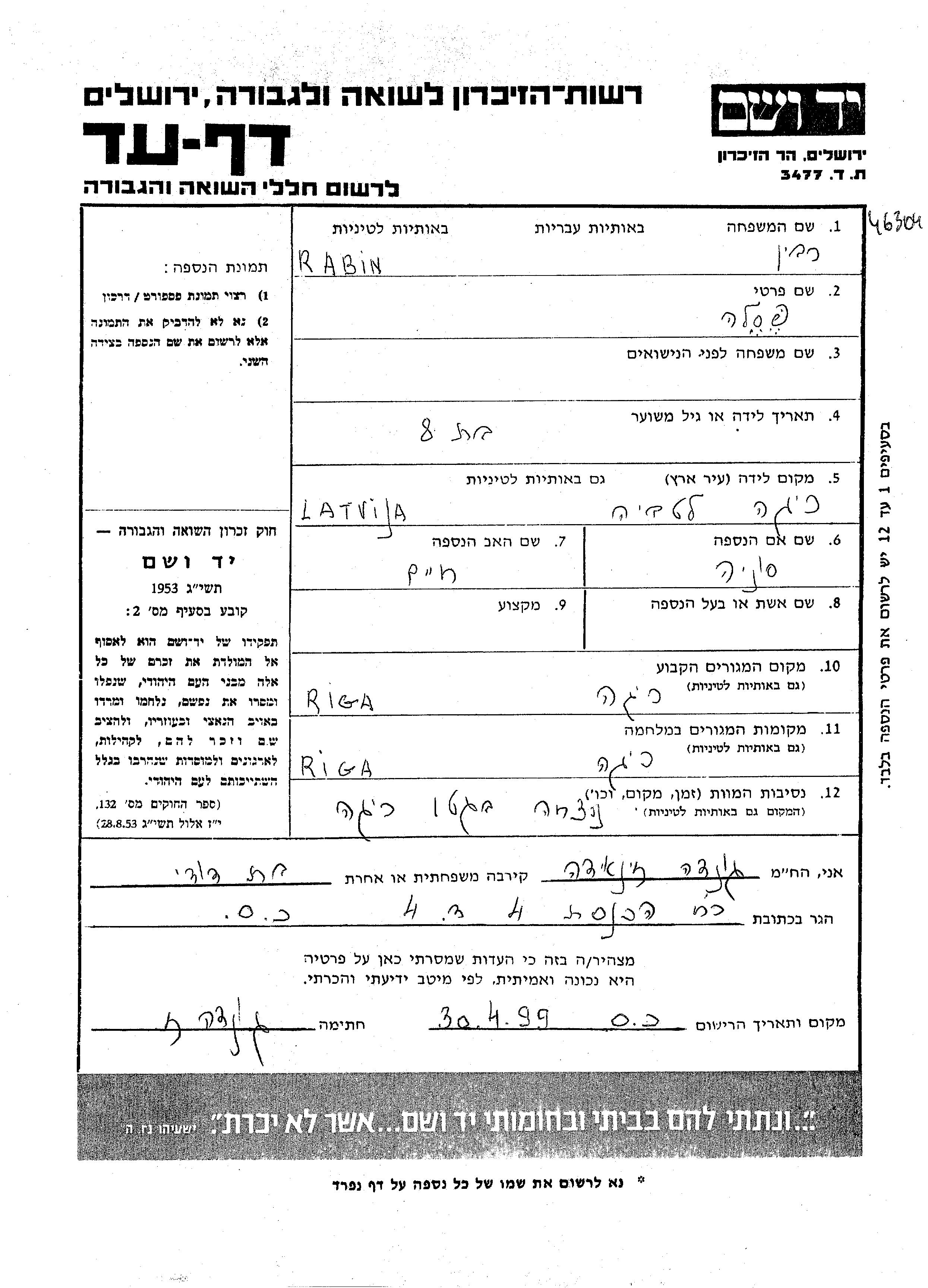Rabin Pesla Riga, Lettland Gedenkblatt