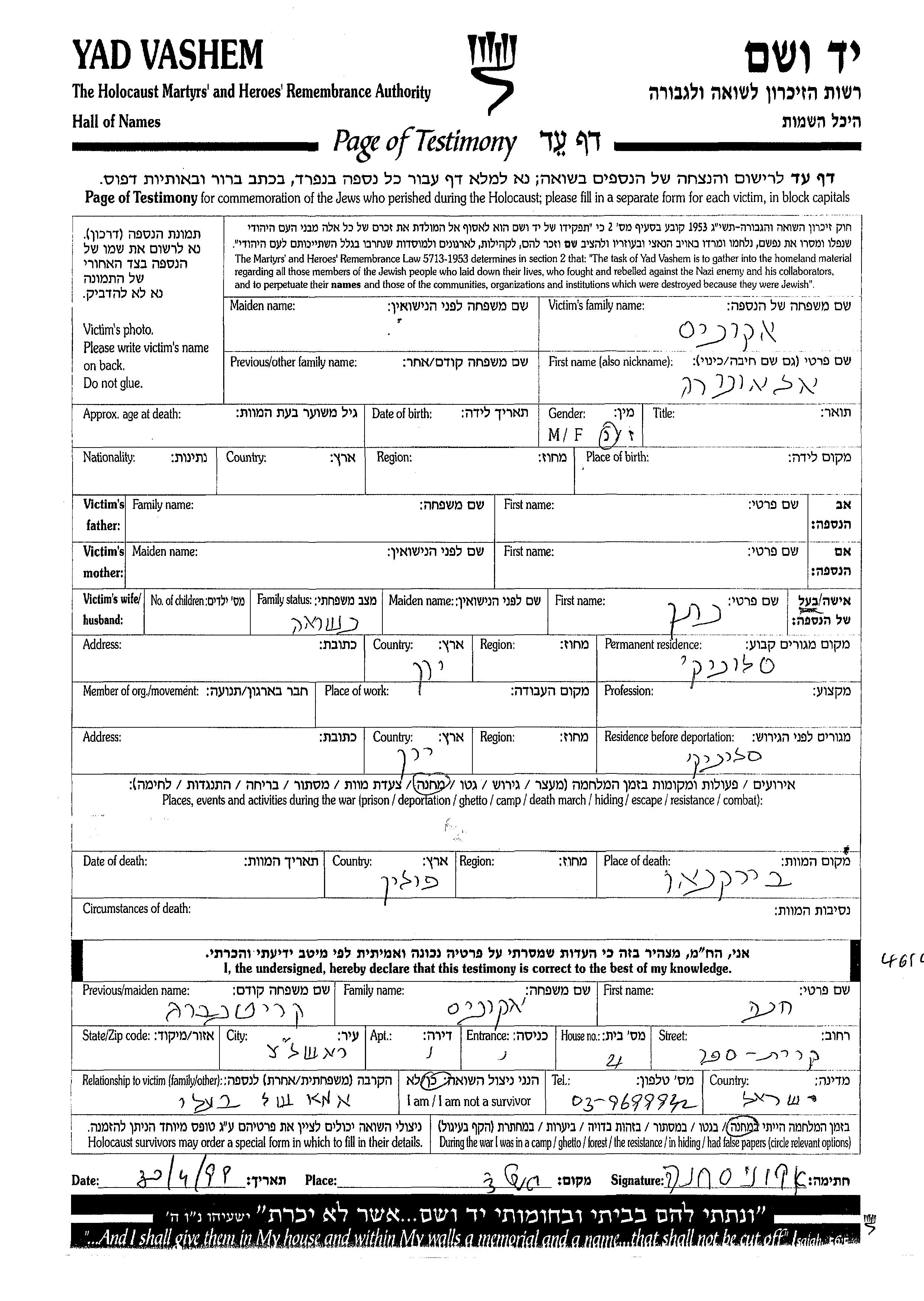 Aufenthaltsort während des Krieges/Schoah