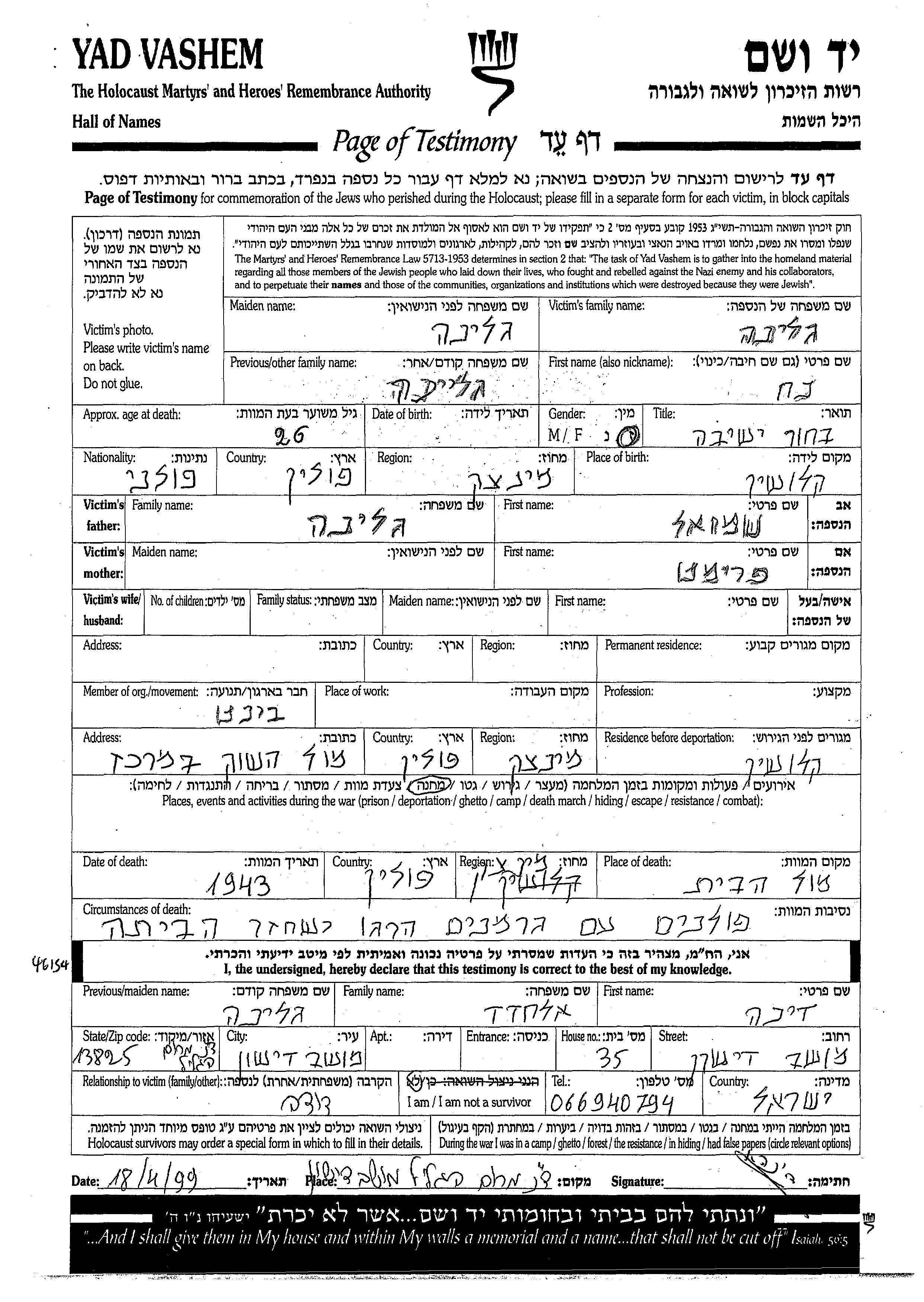 Noakh wurde in der Schoah ermordet. Todesort: Kalusz, Polen im Jahr 1943.