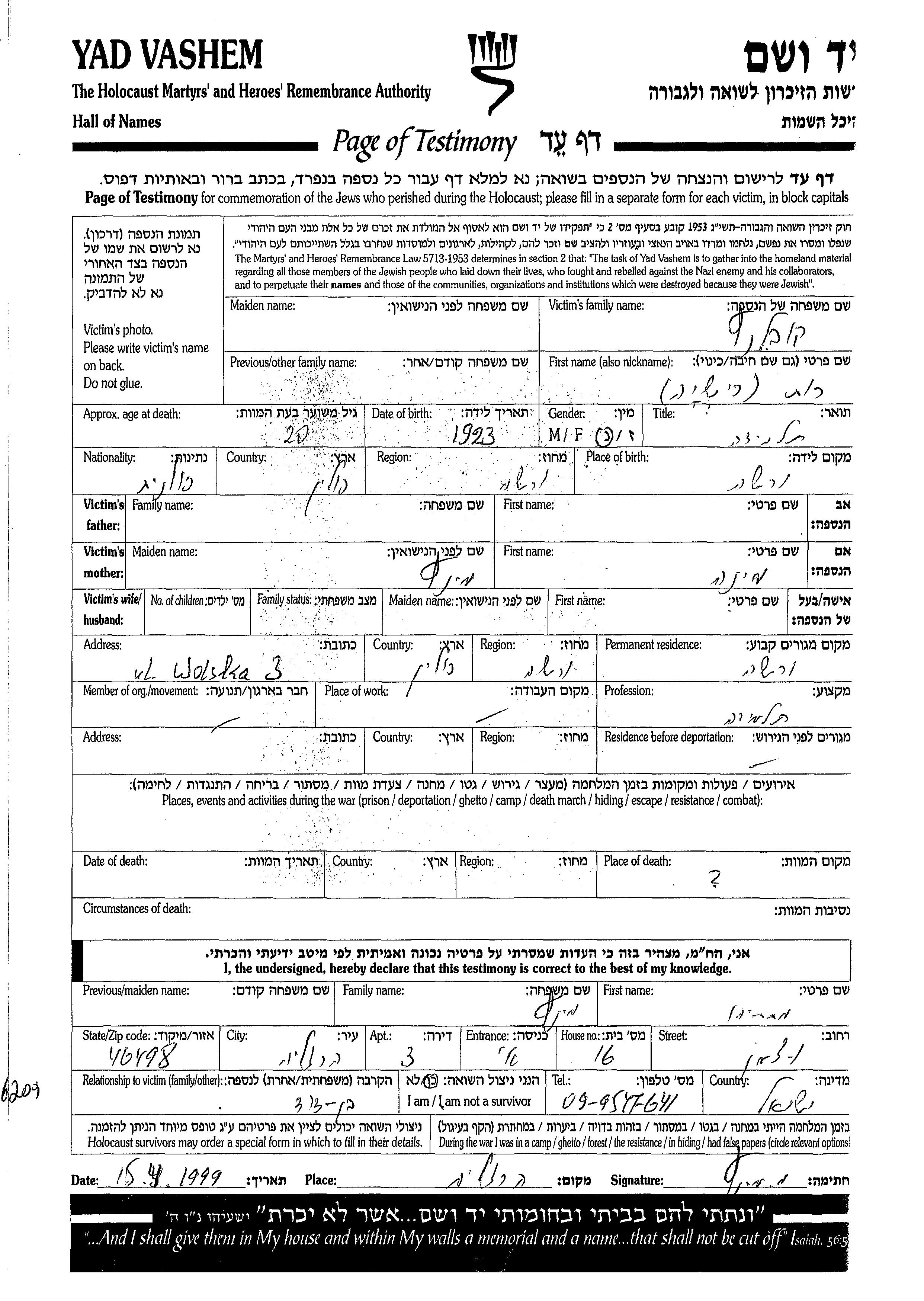 Rut Risha Koblentz wurde im Jahr 1923 in Warsaw, Polen geboren. Sie war die Tochter von Mina. Sie war Schüler/-in. Vor dem Zweiten Weltkrieg lebte sie in Warsaw, Polen.