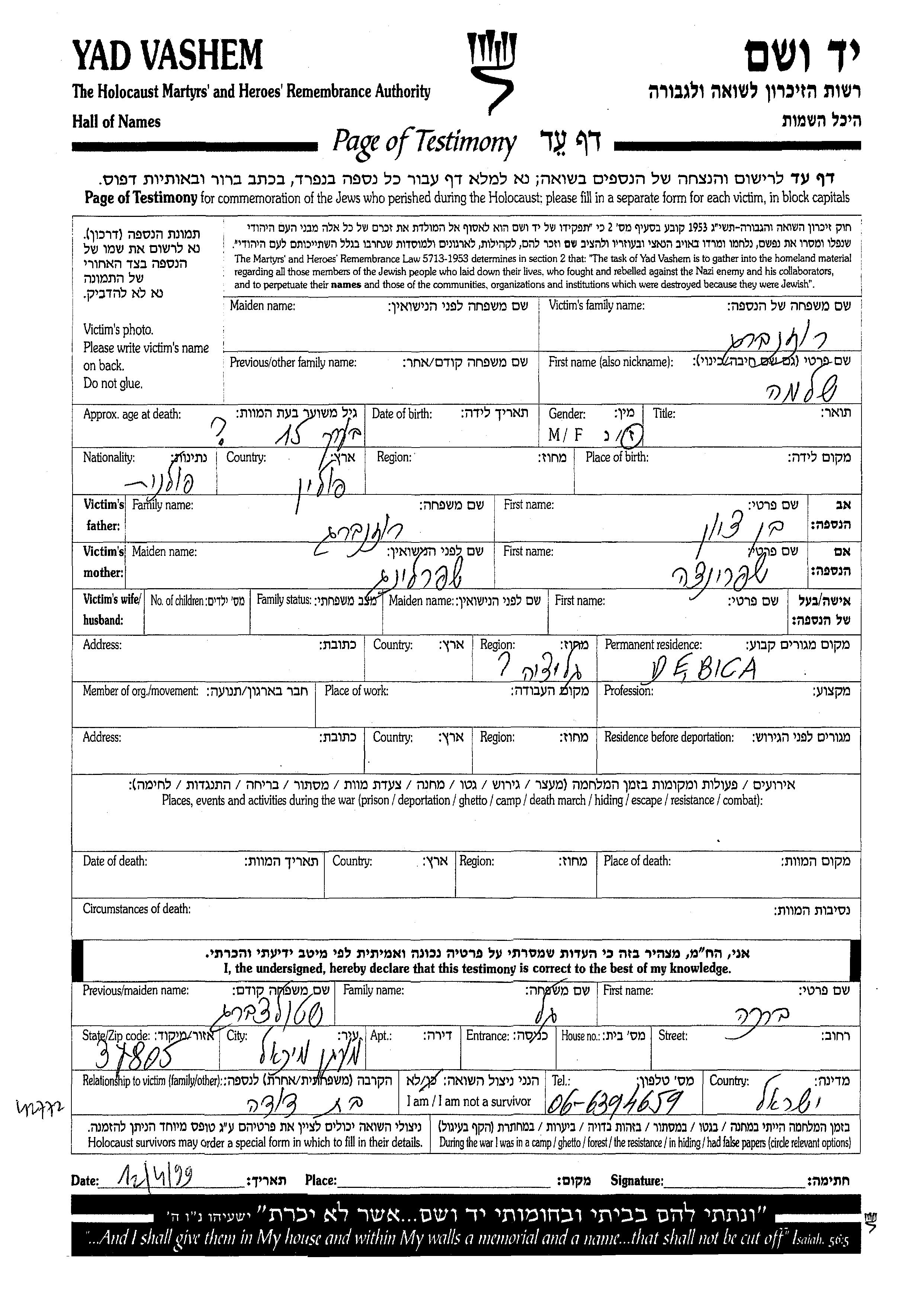 Rozenberg Shlomo Debica, Polen Gedenkblatt