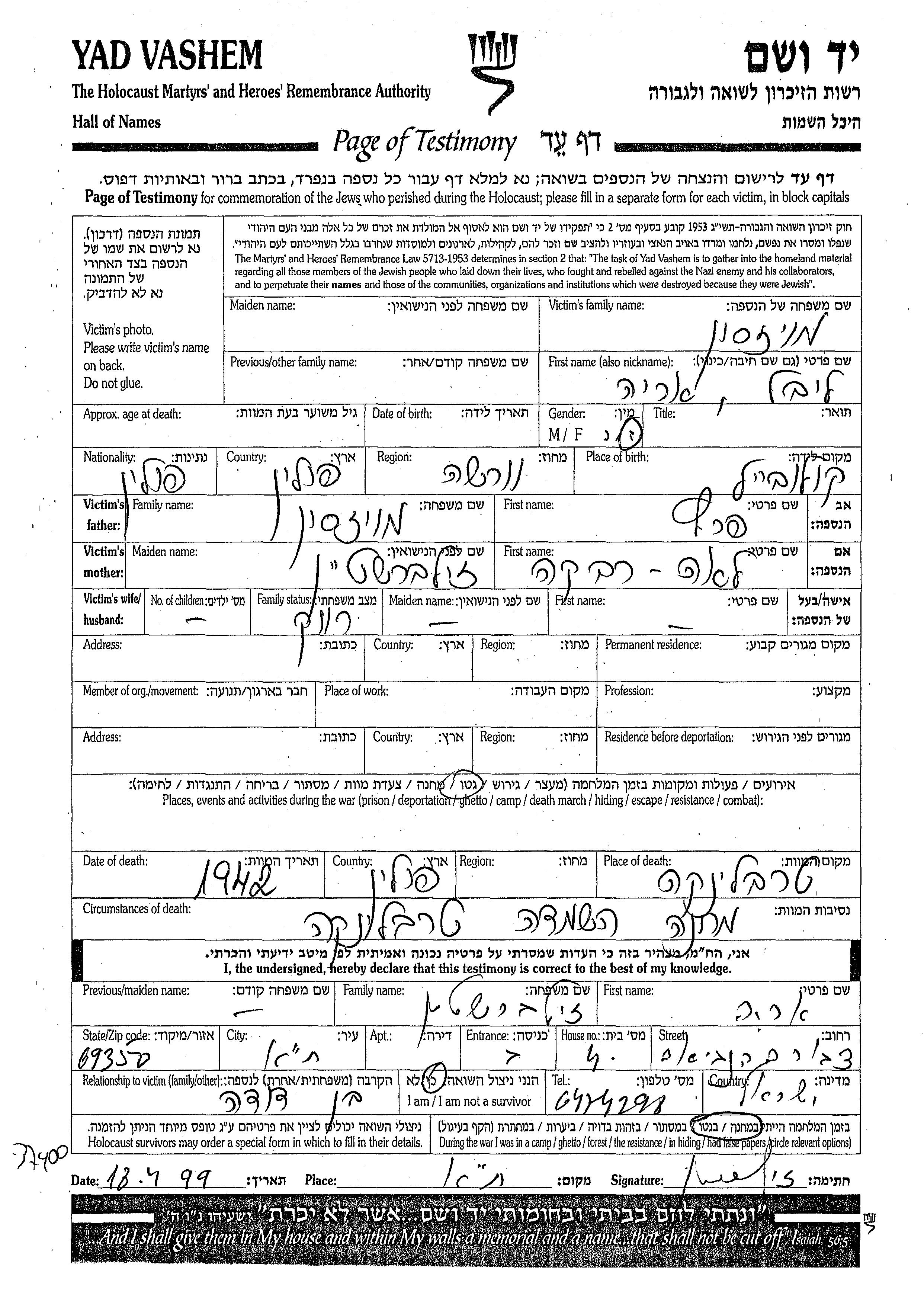 Stadt/Ortschaft oder Lager/Ghetto oder Bezirk/Region oder Land