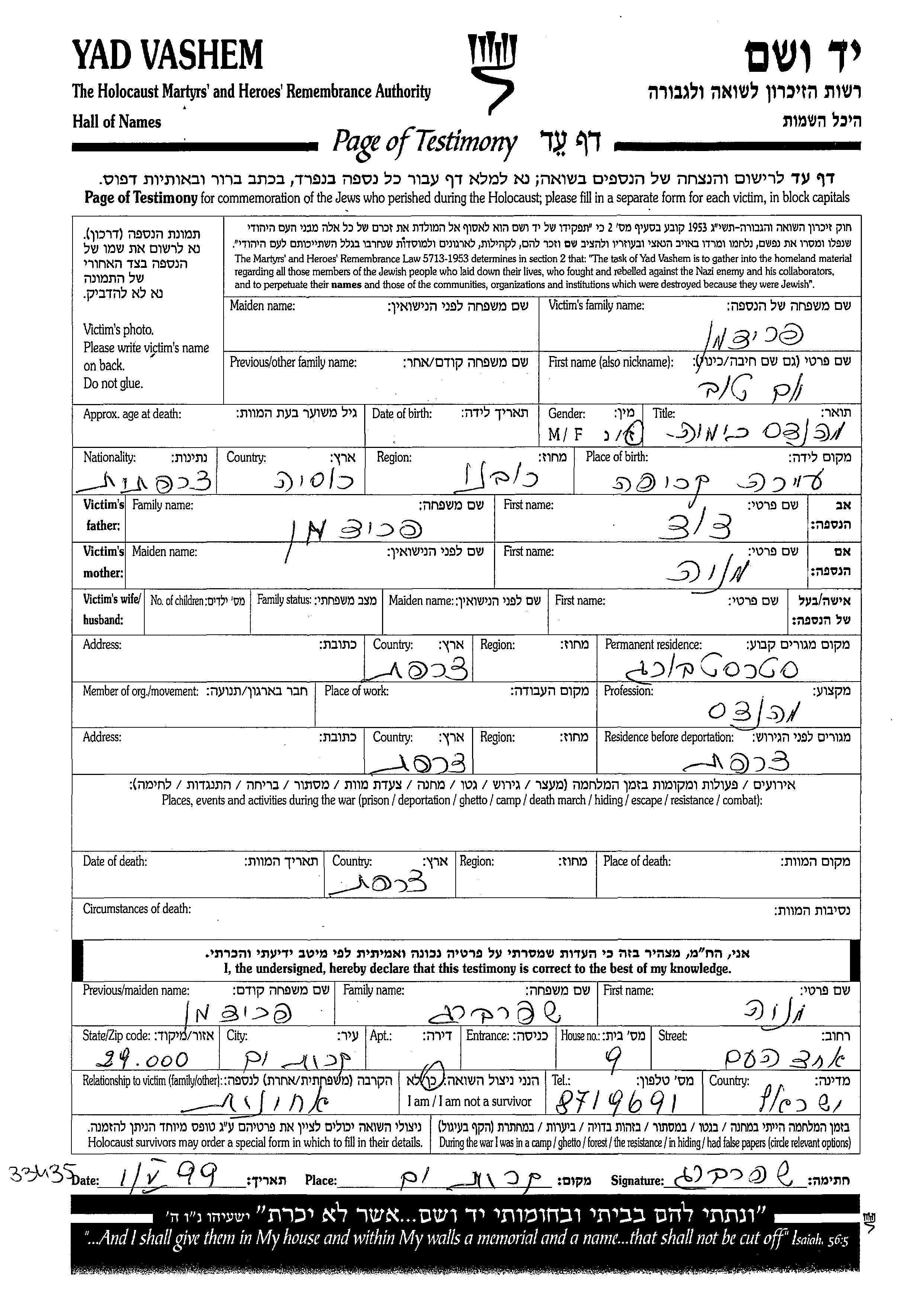 Yom Tov wurde in der Schoah ermordet. Todesort: Frankreich.