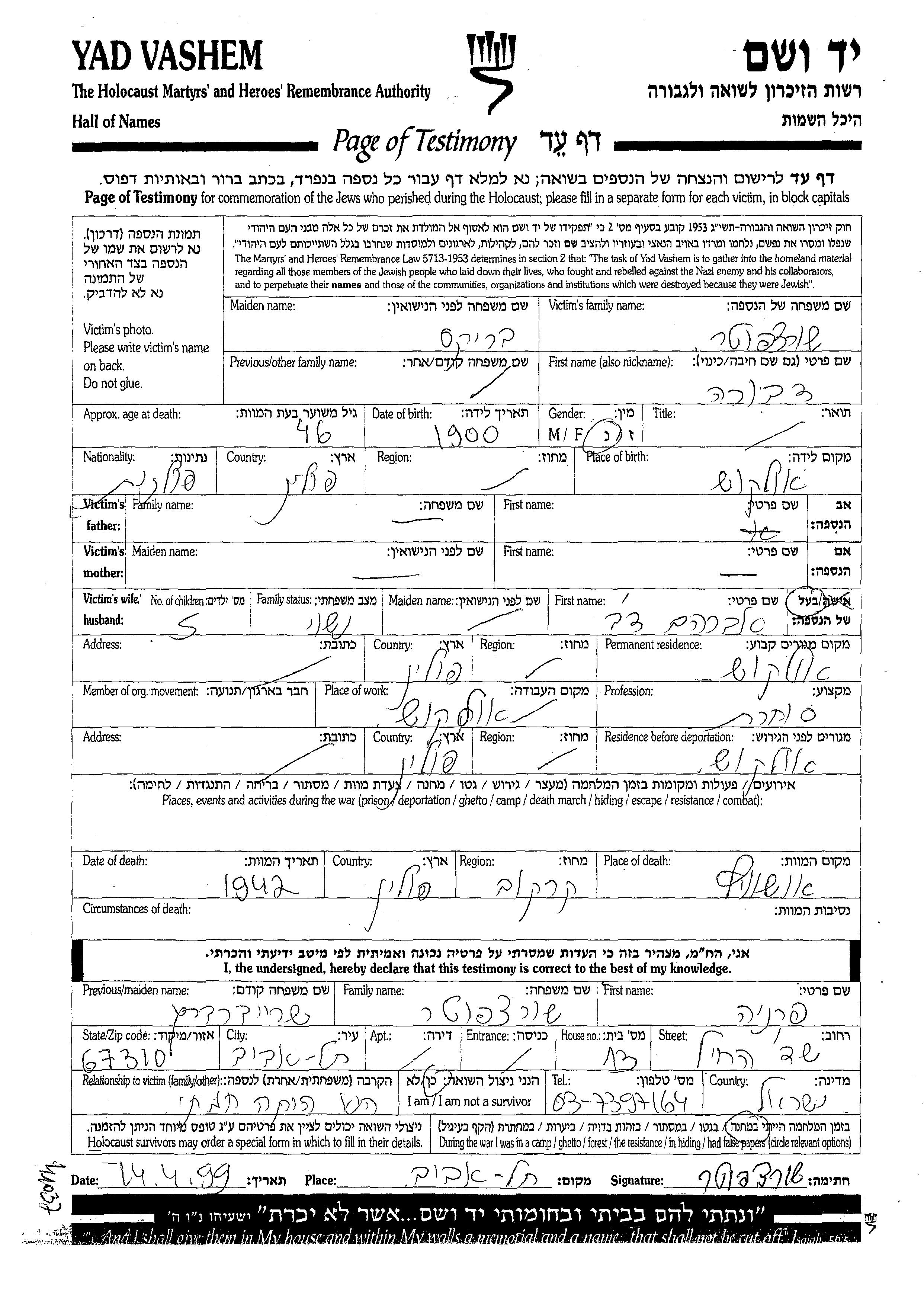 Dvora wurde in der Schoah ermordet. Todesort: Auschwitz, Polen im Jahr 1942.