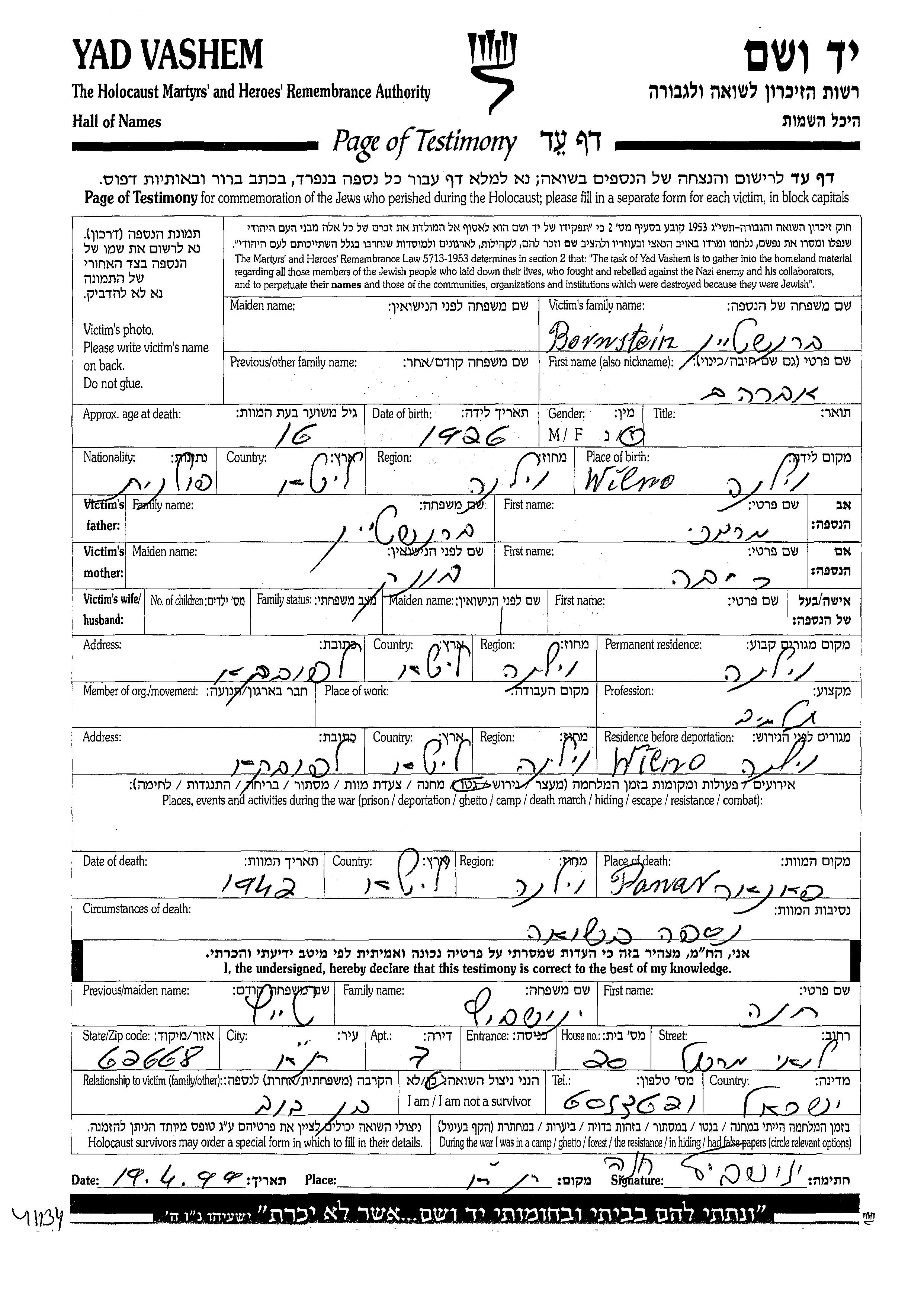 Avraham wurde in der Schoah ermordet. Todesort: Panar, Polen im Jahr 1942.