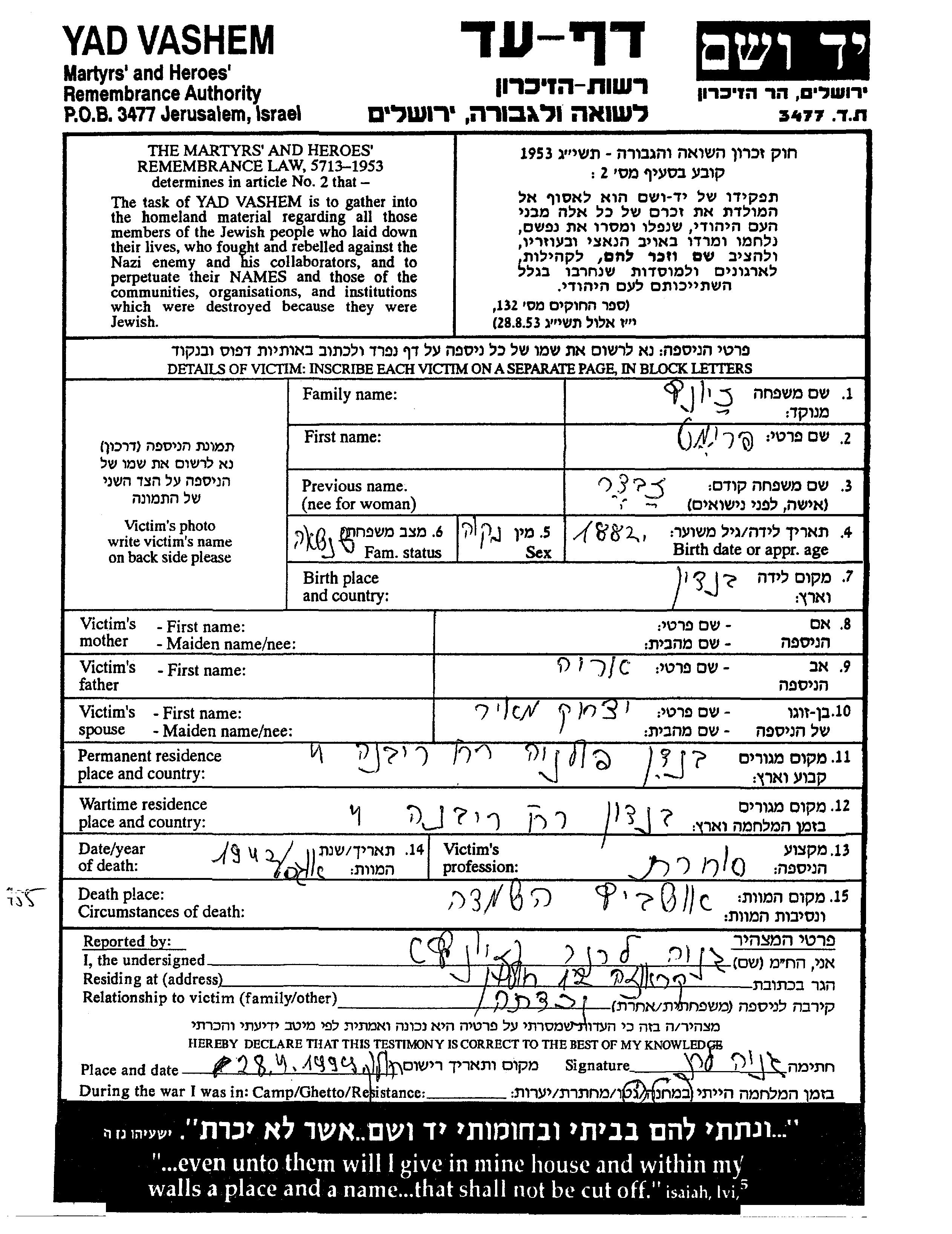 Frimet wurde in der Schoah ermordet. Todesort: Auschwitz, Polen im Jahr 08/1942.