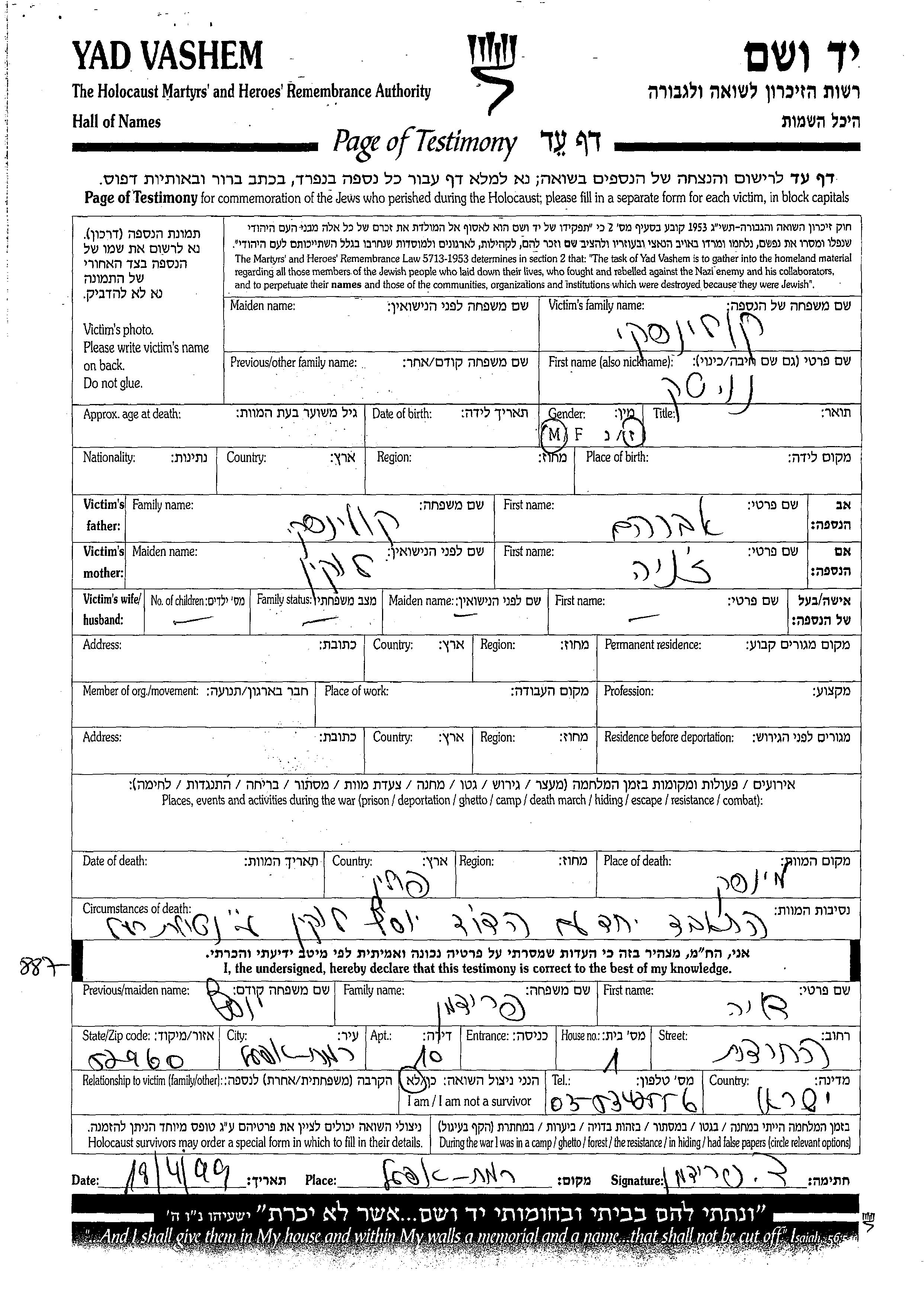 Natan wurde in der Schoah ermordet. Todesort: Minsk, Weißrussland (UdSSR).
