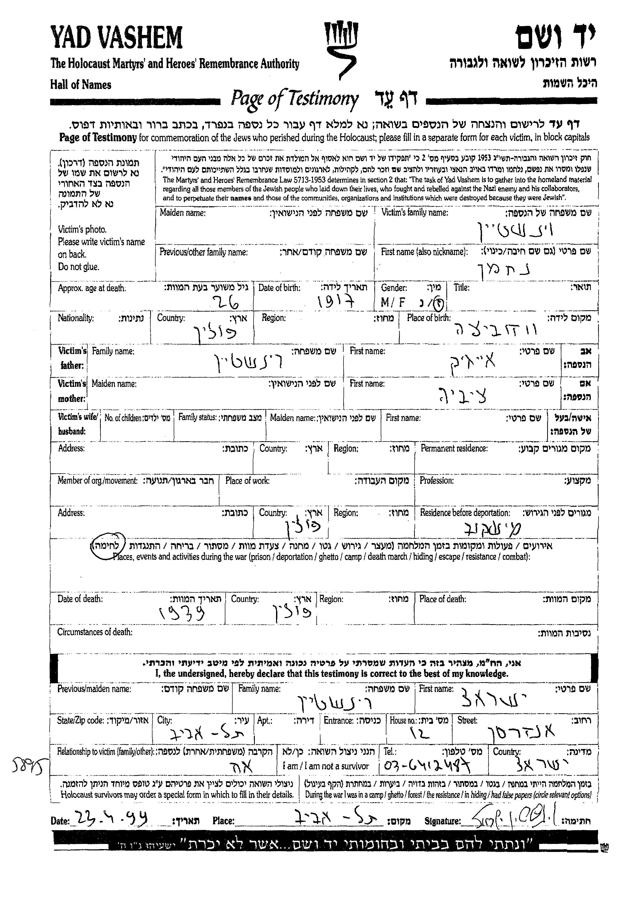Nakhman Veinshtein wurde im Jahr 1917 in Wadowice, Polen geboren. Er war der Sohn von Aizik und Tzivia. Während des Krieges war er in Myszkow, Polen.