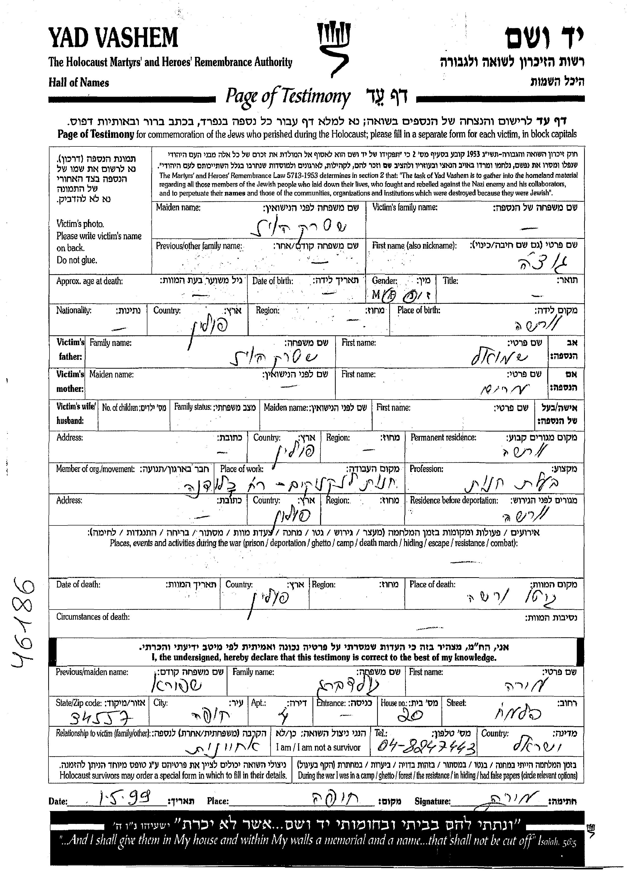 Gucha Name unbekannt, geb. Shtarkhoiz wurde in Warsaw, Polen geboren. Sie war die Tochter von Shmuel und Miriam. Sie war Verkäufer/-in. Vor dem Zweiten Weltkrieg lebte sie in Warsaw, Polen. Während des Krieges war sie in Warsaw, Polen.