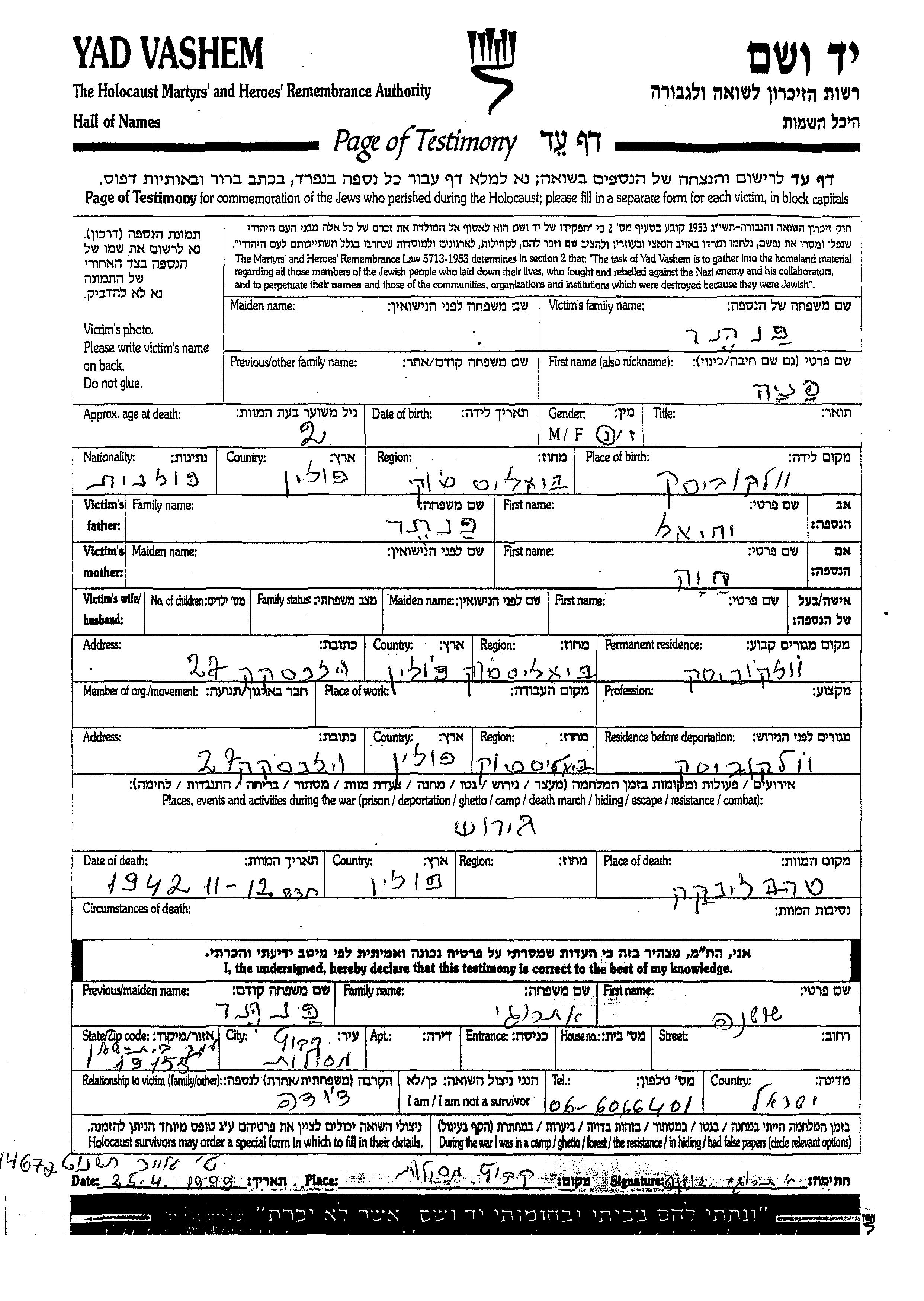 Fania wurde in der Schoah ermordet. Todesort: Treblinka, Polen im Jahr 11/1942.