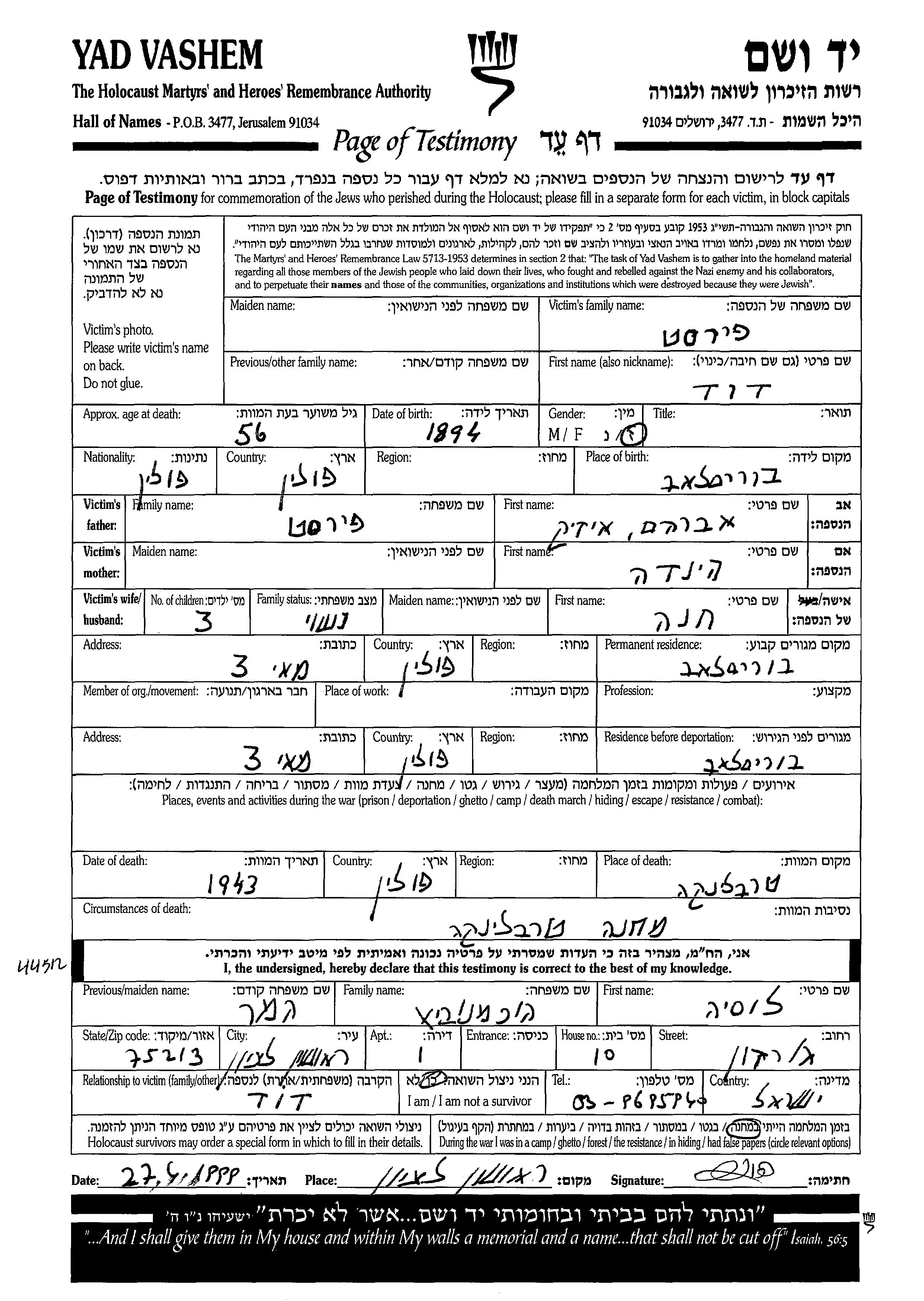 David wurde in der Schoah ermordet. Todesort: Treblinka, Polen im Jahr 1943.