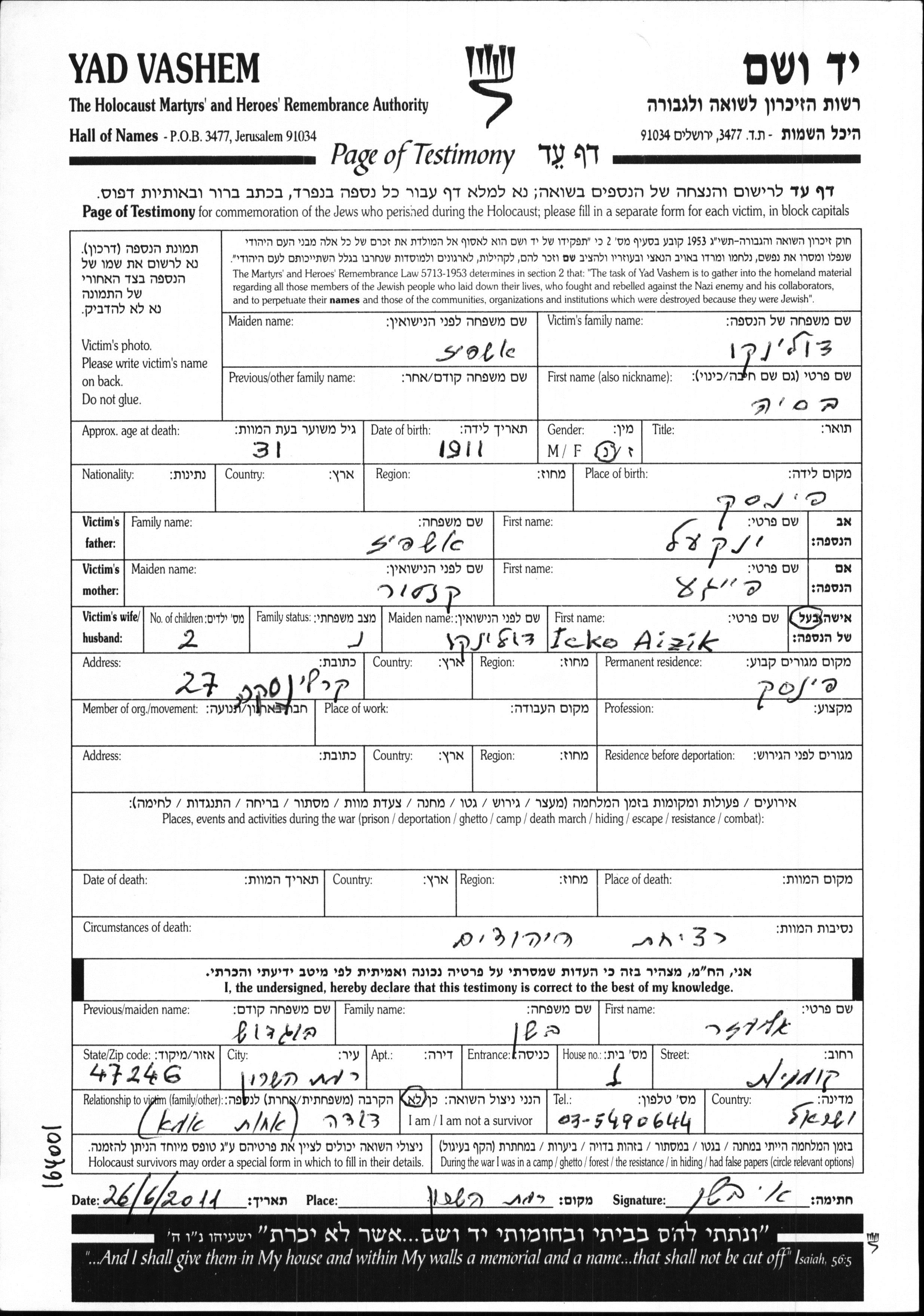 Basia Dolinski, geb. Ashpiz wurde im Jahr 1911 in Pinsk, Polen geboren. Sie war die Tochter von Yaakov und Feige, geb. Kantor. Sie war mit Icko Verheiratet. Vor dem Zweiten Weltkrieg lebte sie in Pinsk, Polen. Während des Krieges war sie in Pinsk, Polen.