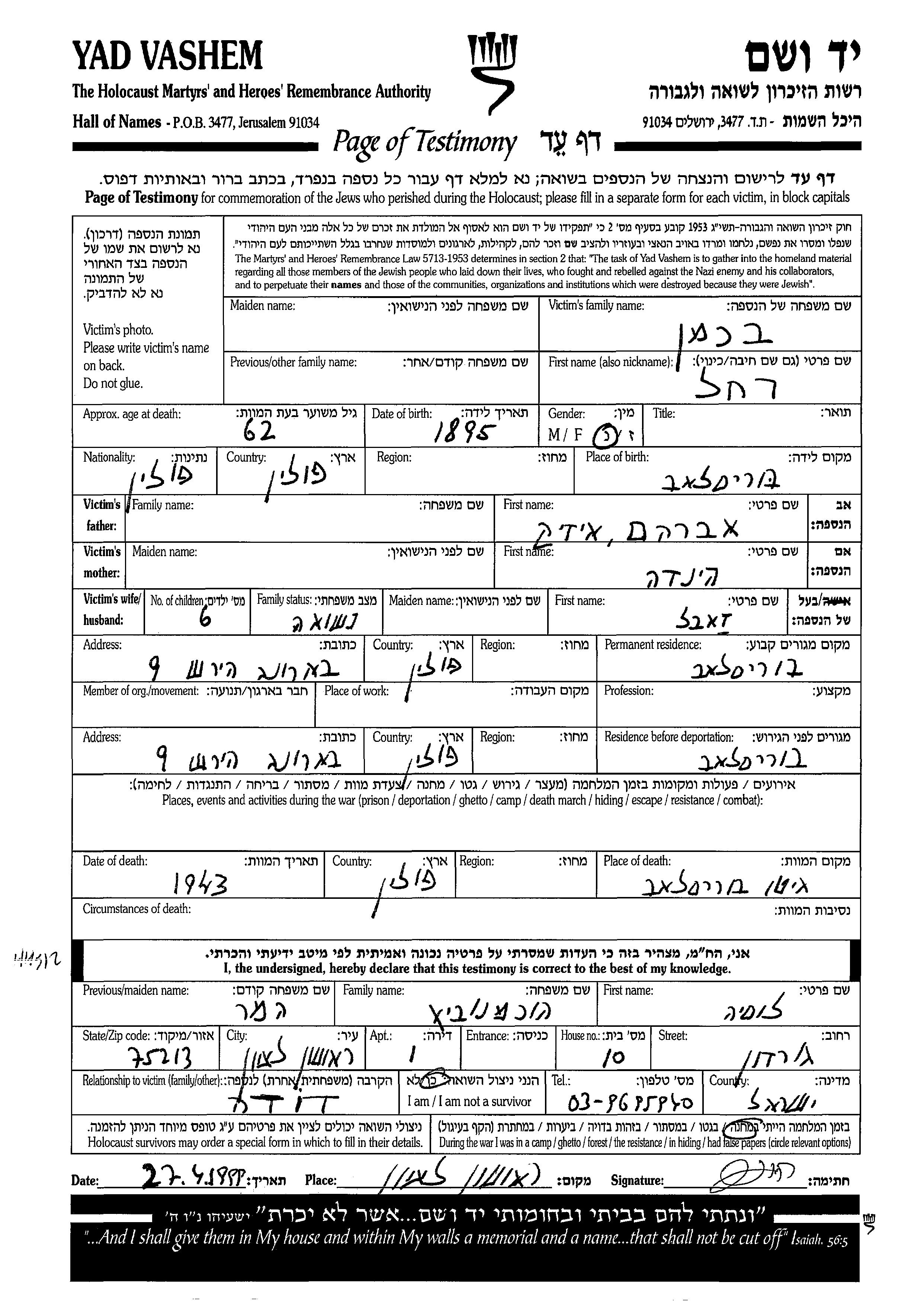 Rachel wurde in der Schoah ermordet. Todesort: Borislav, Polen im Jahr 1943.