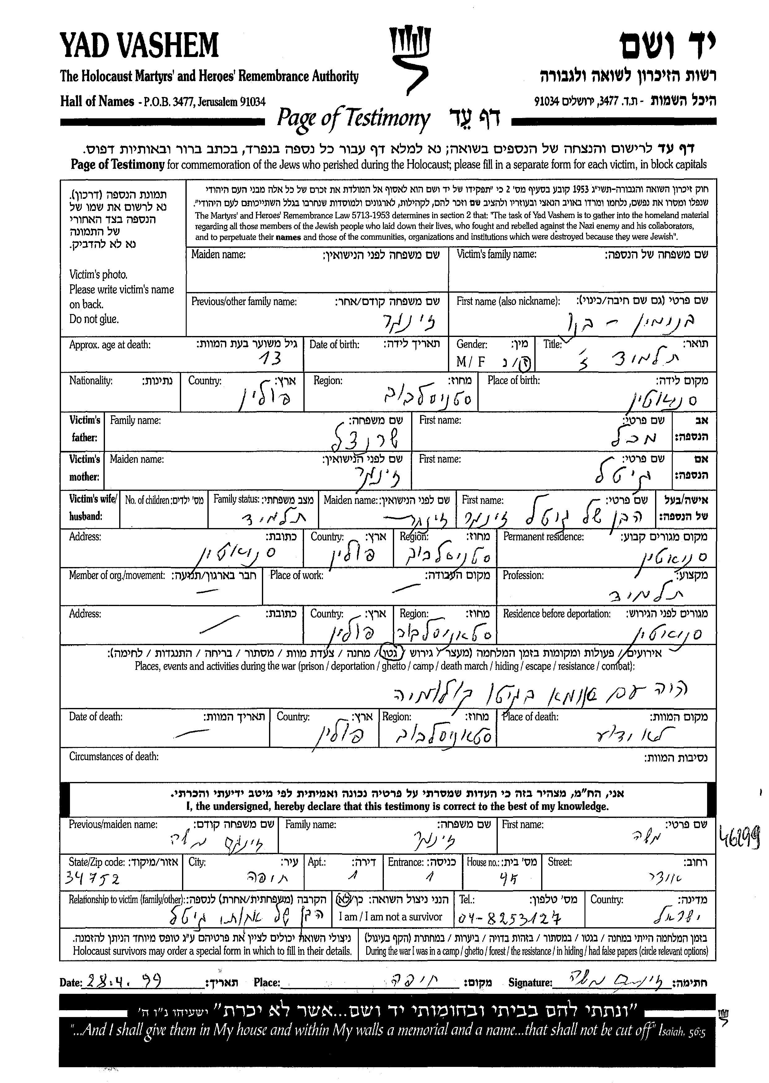 Beniamin Beno wurde in der Schoah ermordet. Todesort: Stanislawow, Polen.