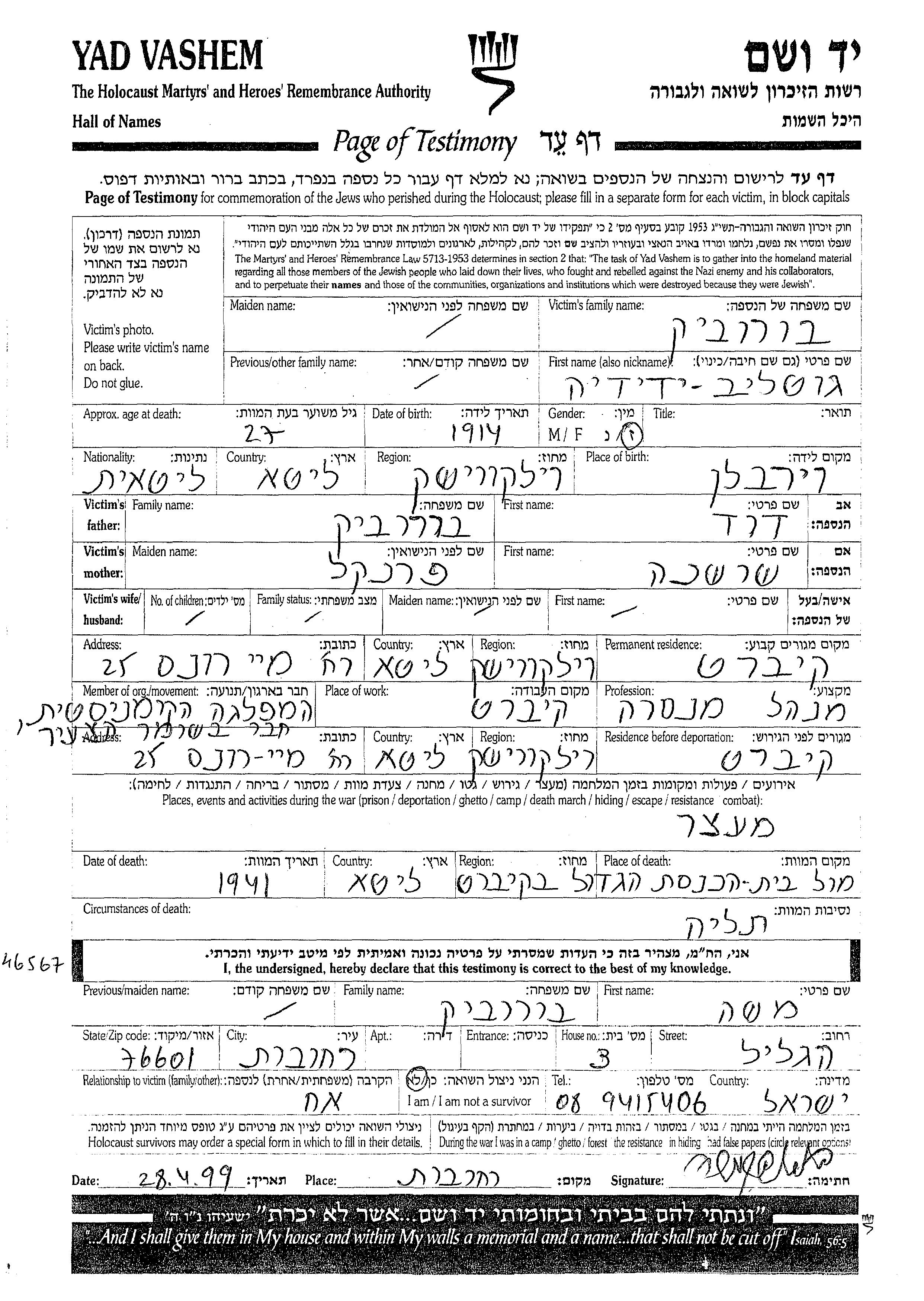 Borovik Gotlib Yedidia 1914 Kibart, Litauen Gedenkblatt