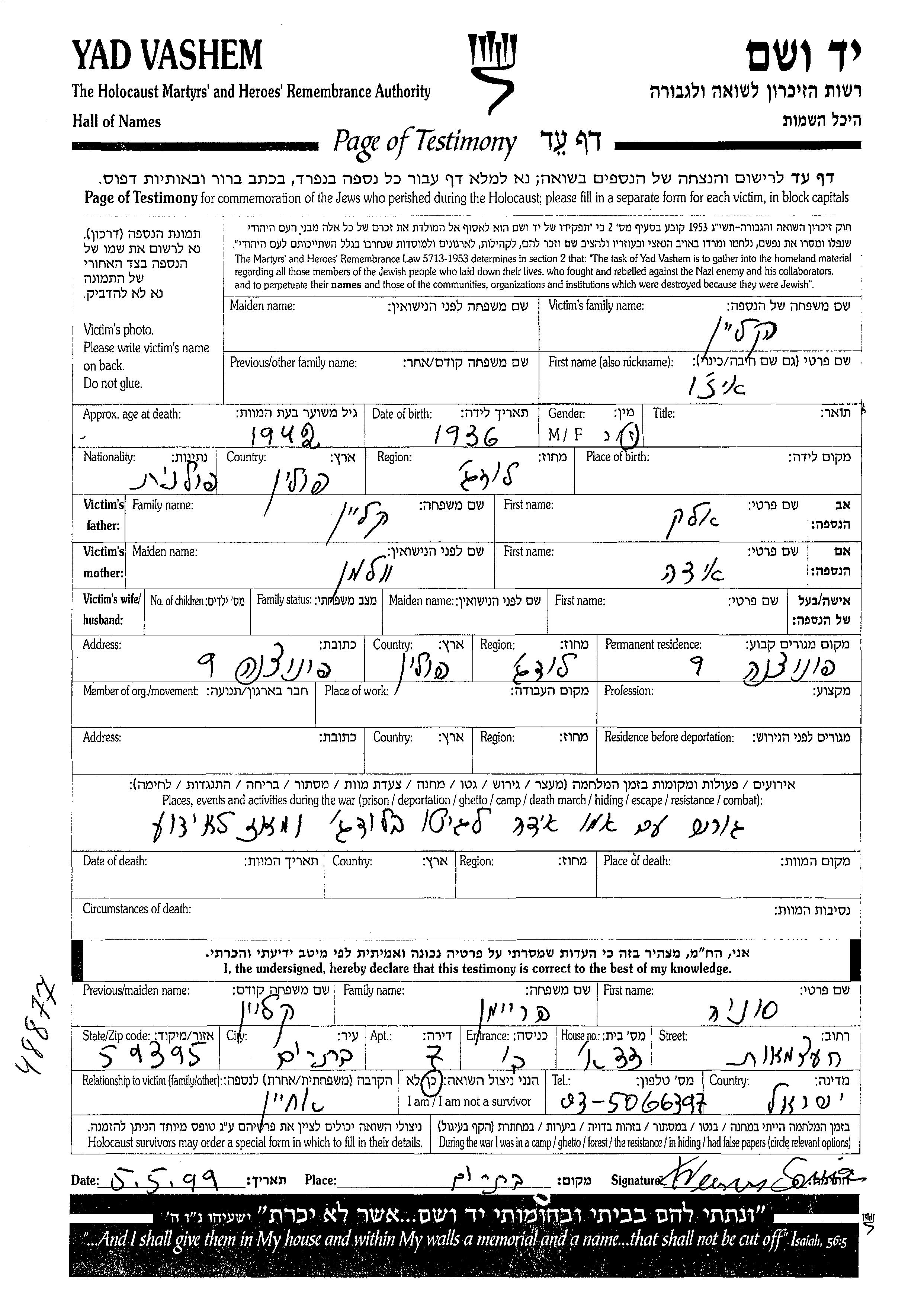 Izo Klein wurde im Jahr 1936 in Lodz, Polen geboren. Sie war die Tochter von Alek und Ida. Vor dem Zweiten Weltkrieg lebte sie in Lodz, Polen.