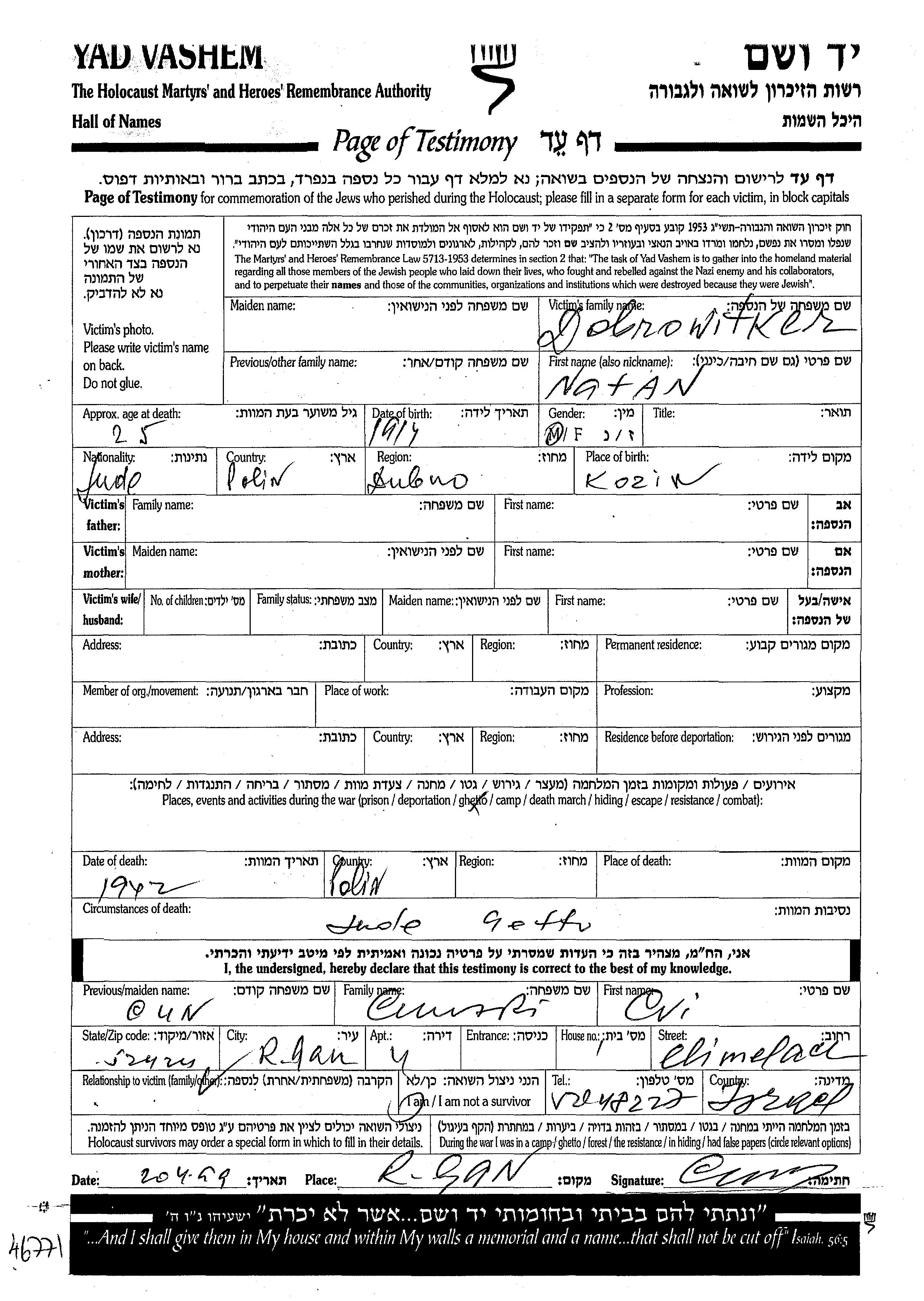Dobrowitker Natan 1914 unbekannter Ort, Gedenkblatt