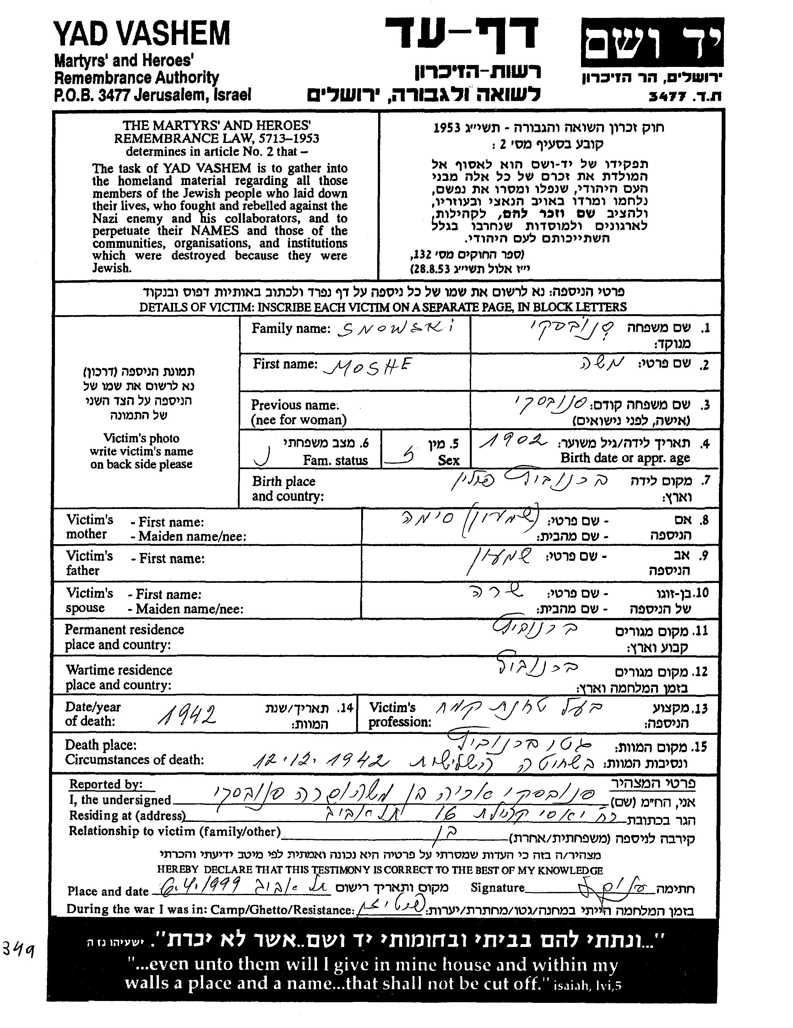 Moshe wurde in der Schoah ermordet. Todesort: Barnovis, Polen im Jahr 12/12/1942.