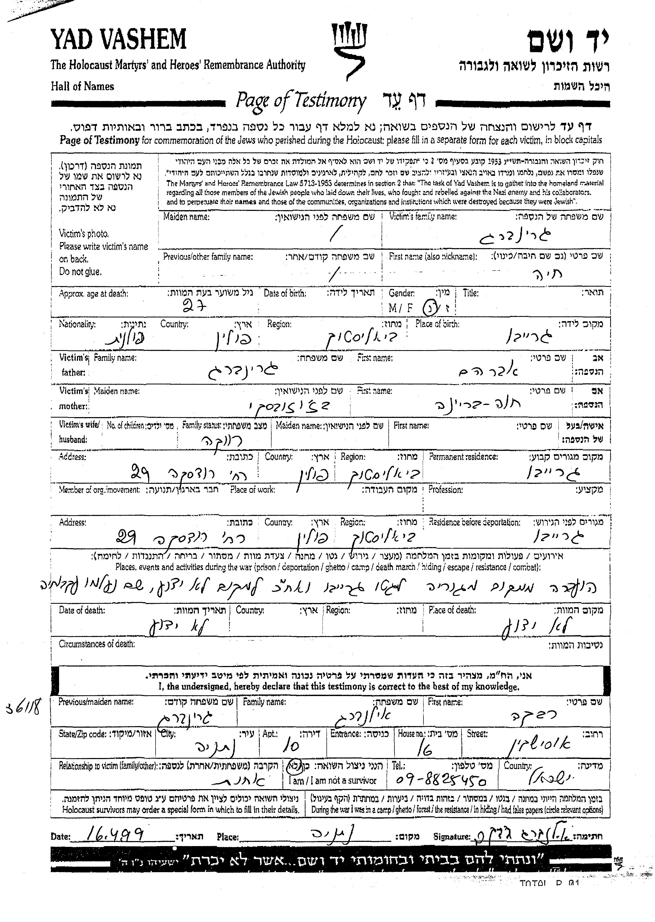 Grinberg Khaia Graiova, Polen Gedenkblatt