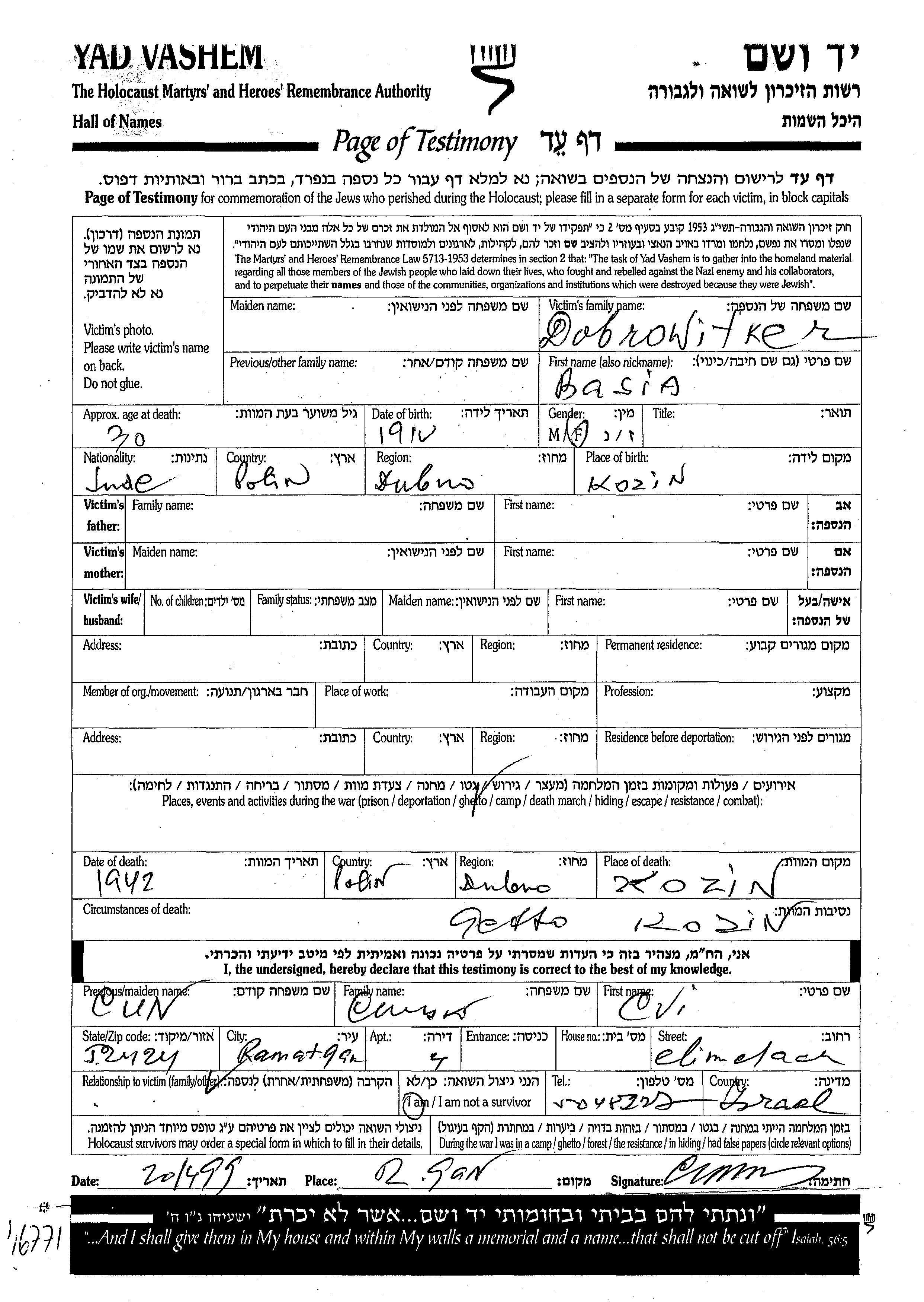 Suche nach einem Todesjahr im Zeitraum der Holocaust: 1933 bis 1945. Bitte wählen Sie 'Exakt' im Auswahlmenü, um nur nach einem einzelnen Jahr zu suchen, alternativ können Sie die flexibleren Optionen '+/- 2 Jahre' oder '+/- 5 Jahre' wählen.