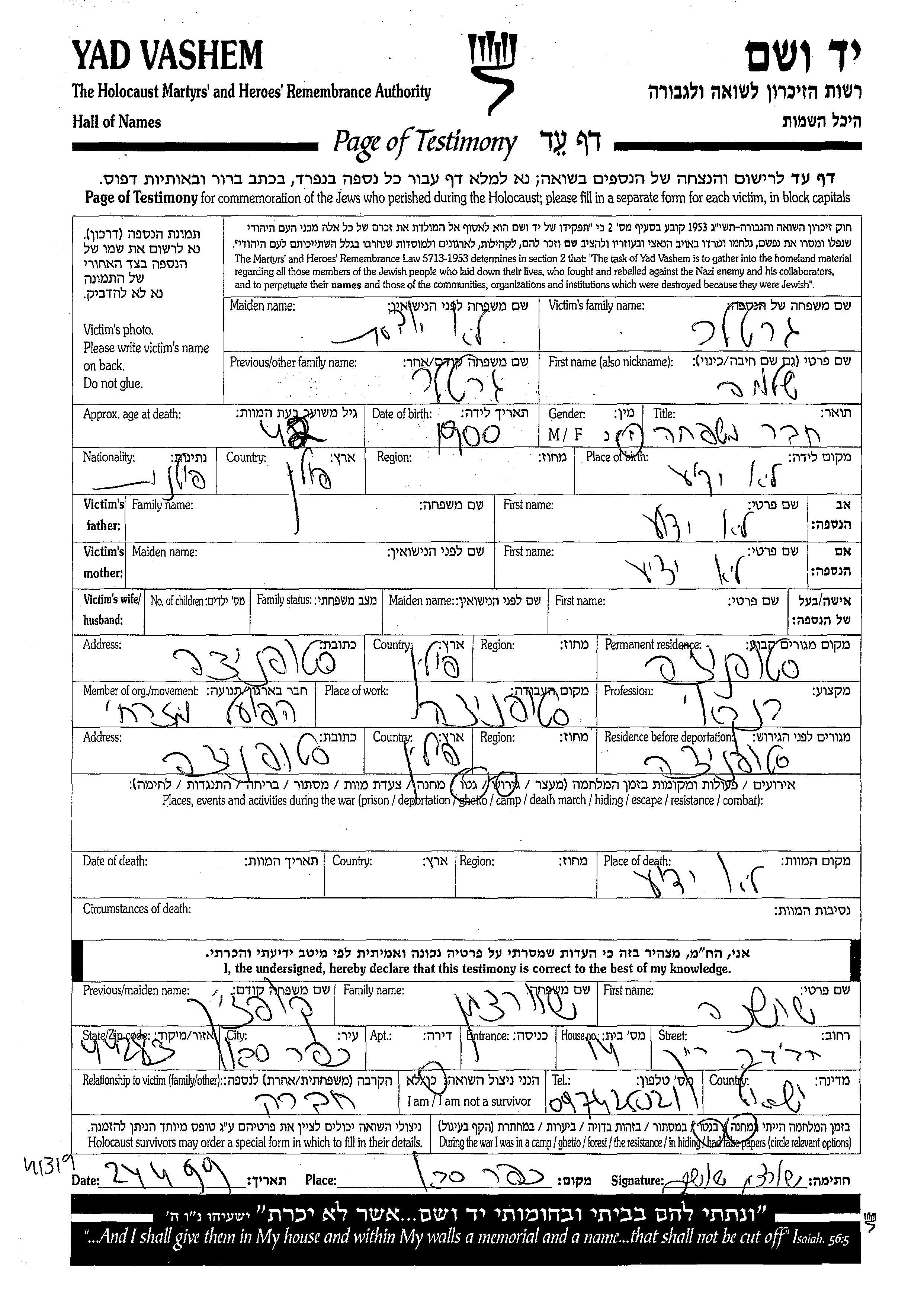 Gertler Shlomo 1900 Stopnica, Polen Gedenkblatt