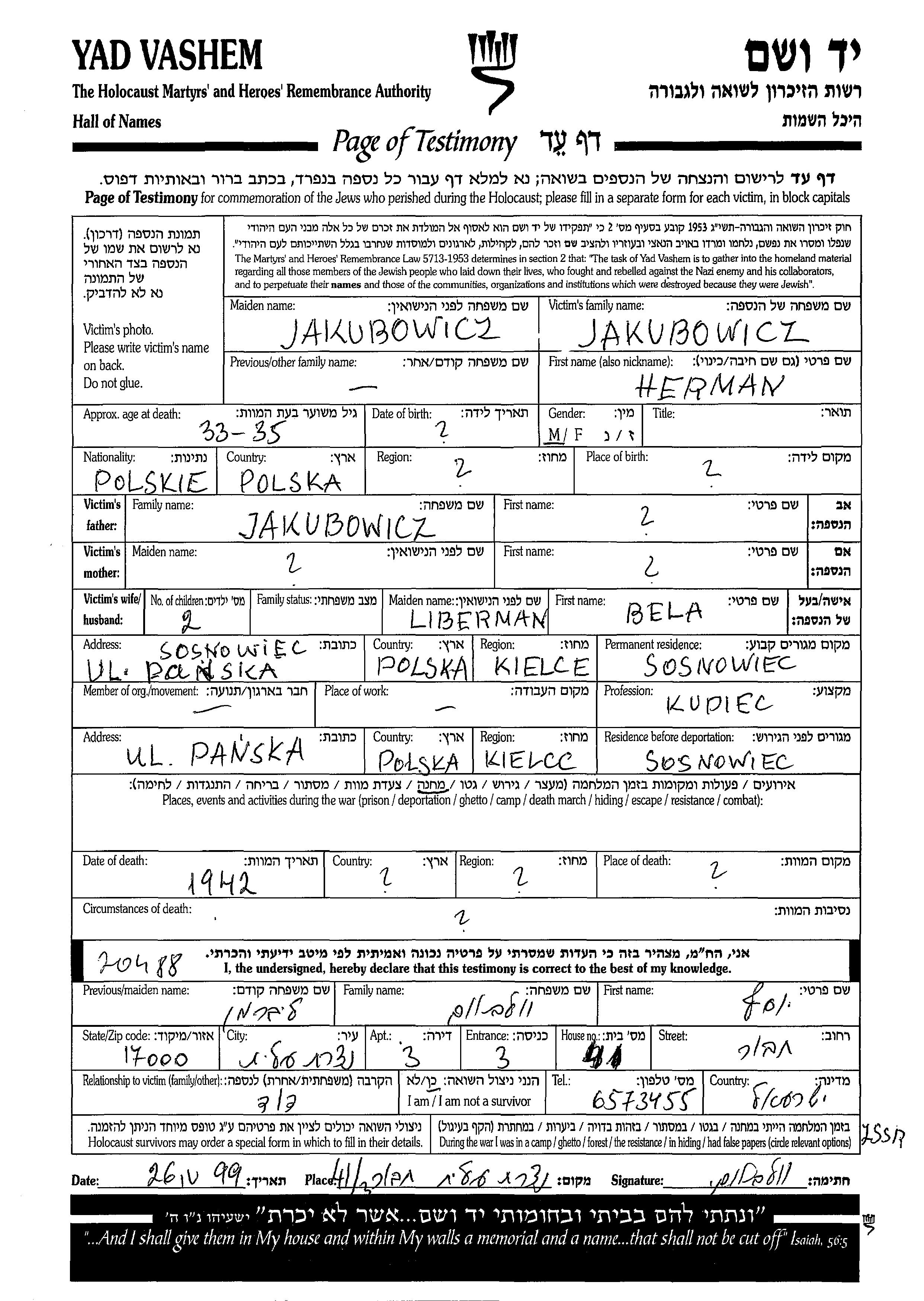Herman wurde in der Schoah ermordet. Todesort: unbekannt im Jahr 1942.