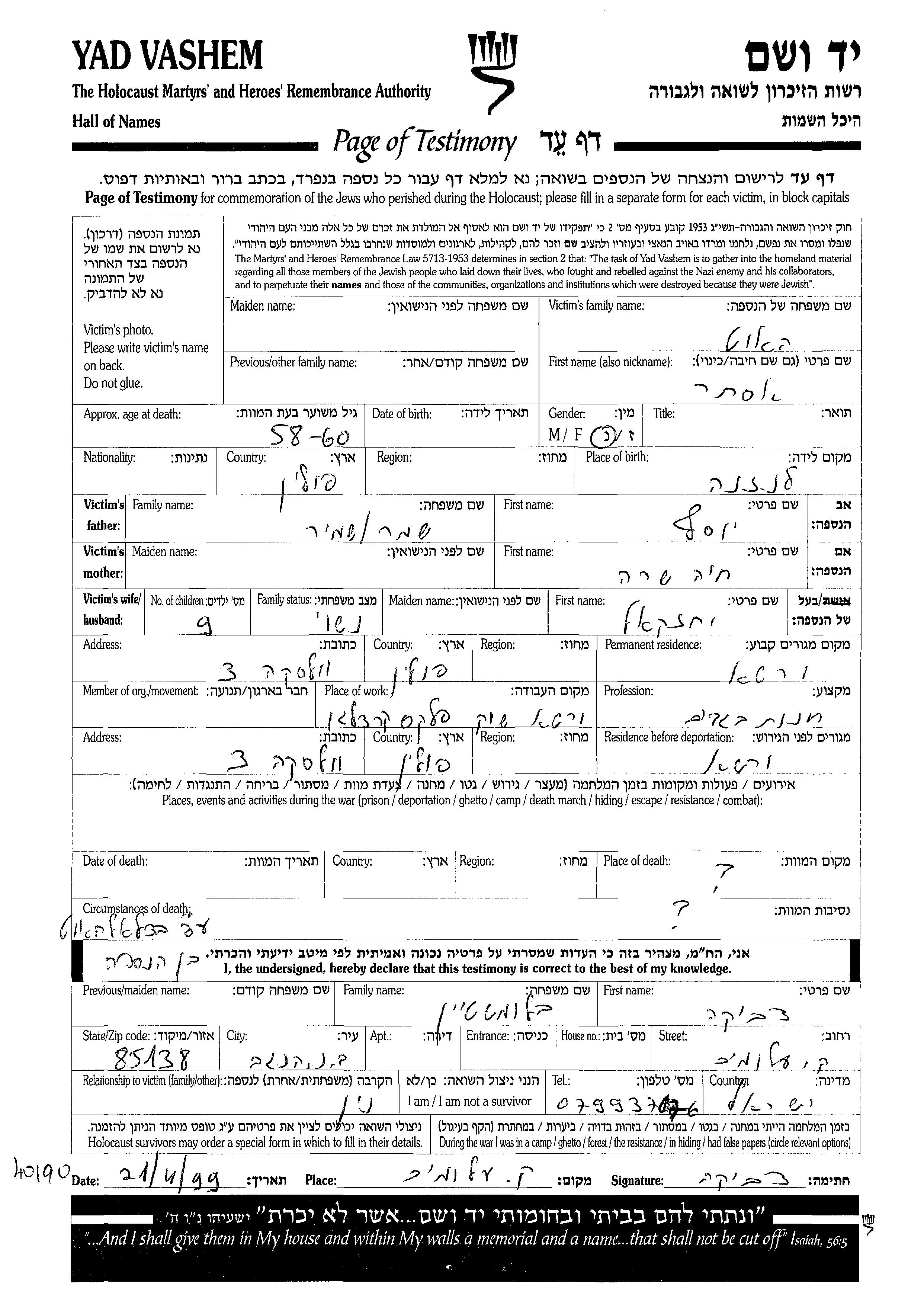 Ester wurde in der Schoah ermordet.
