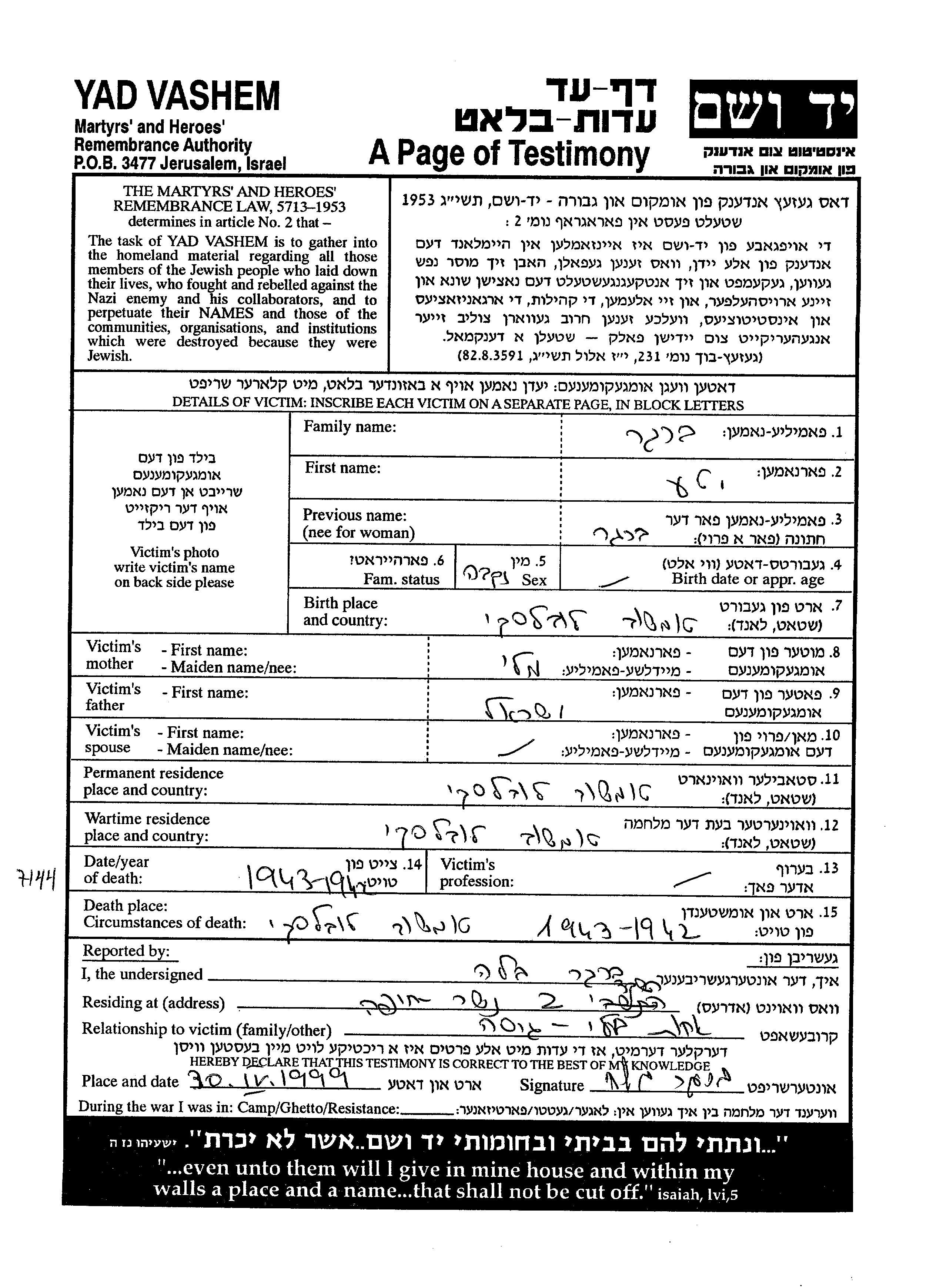 Ite wurde in der Schoah ermordet. Todesort: Tomaszow Lubelski, Polen im Jahr 1942.