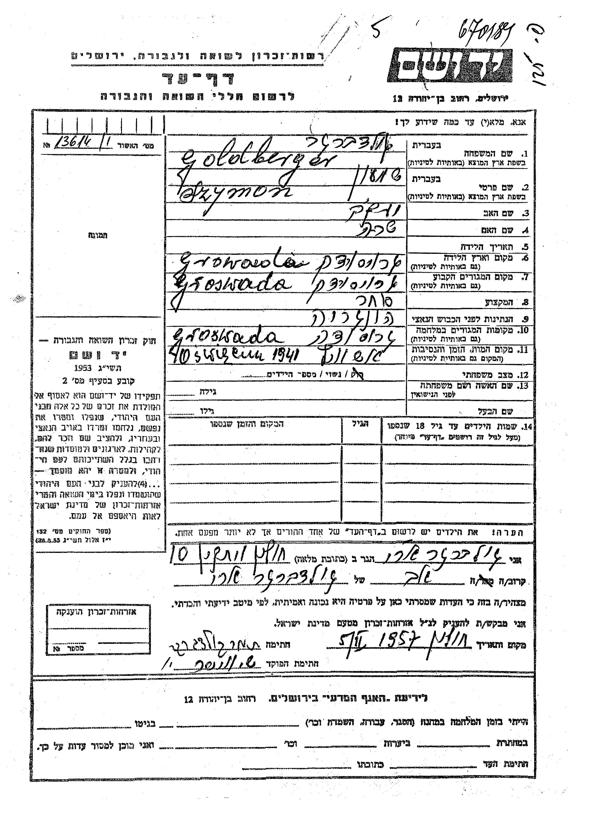 Szymon Goldberger wurde in Grosswardein, Rumänien geboren. Er war der Sohn von Yaakov und Sara. Er war Kaufmann/-frau und Verheiratet. Vor dem Zweiten Weltkrieg lebte er in Grosswardein, Rumänien. Während des Krieges war er in Grosswardein, Rumänien.