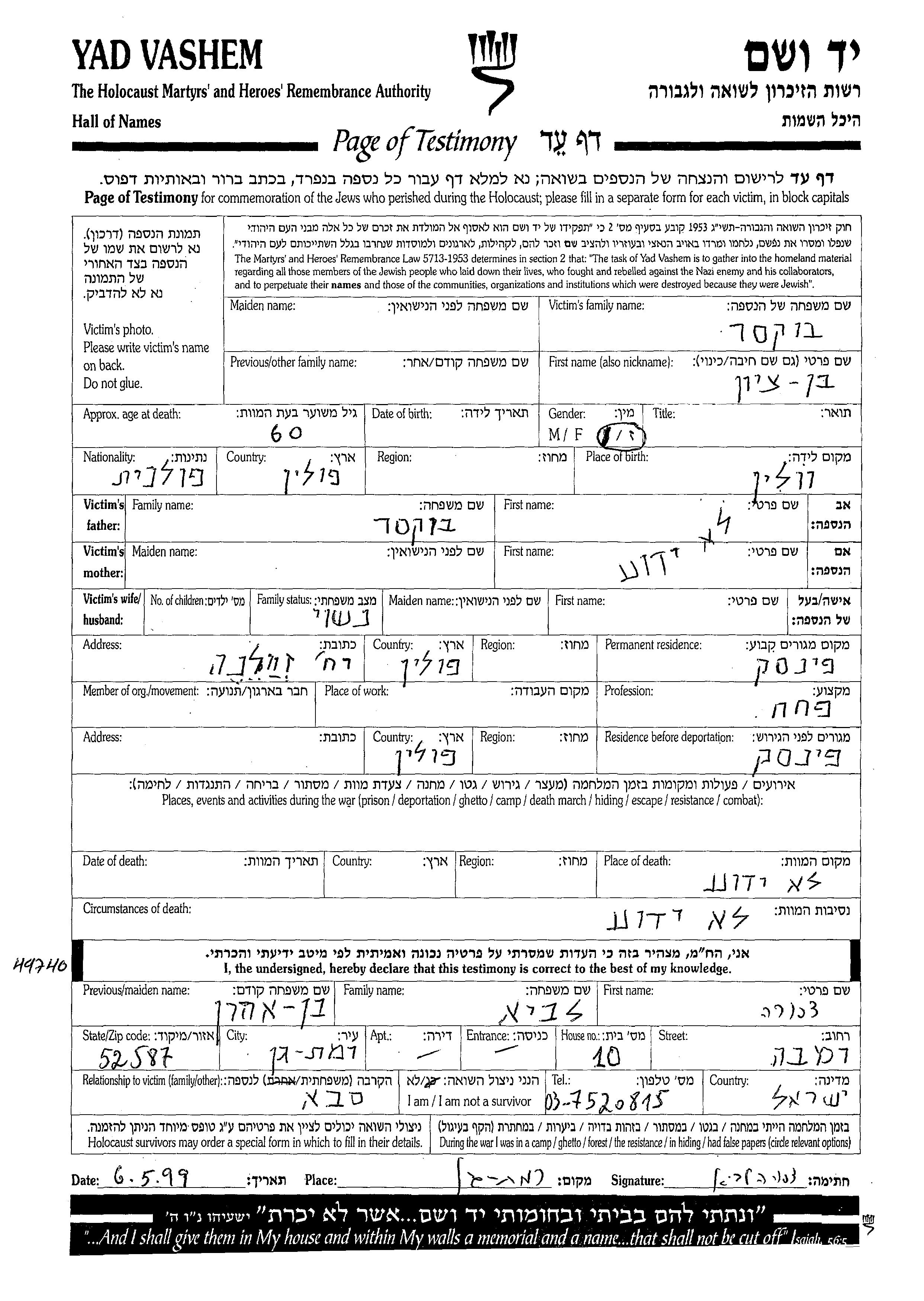 Bentzion wurde in der Schoah ermordet.