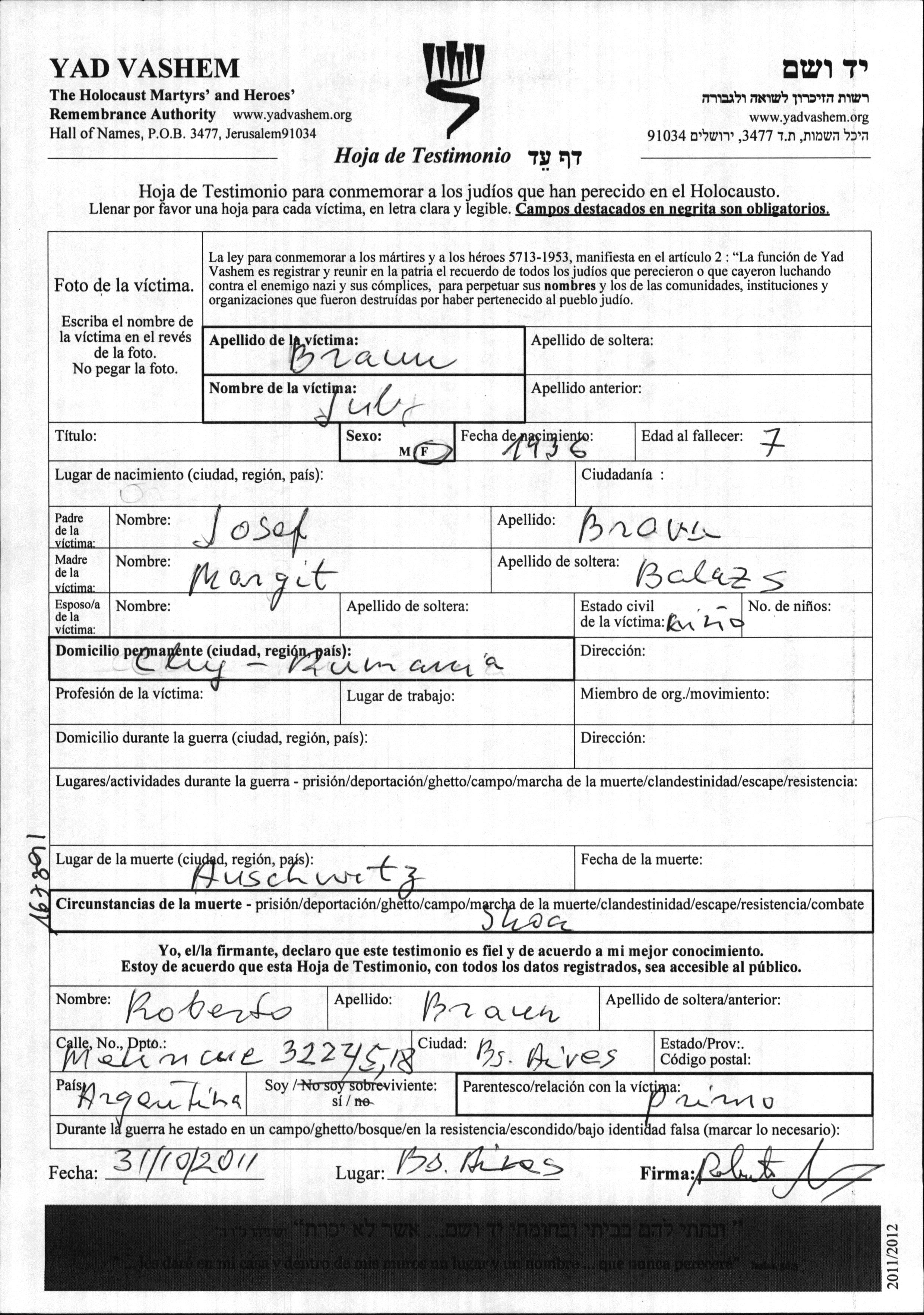Jul wurde in der Schoah ermordet. Todesort: Auschwitz, Polen.