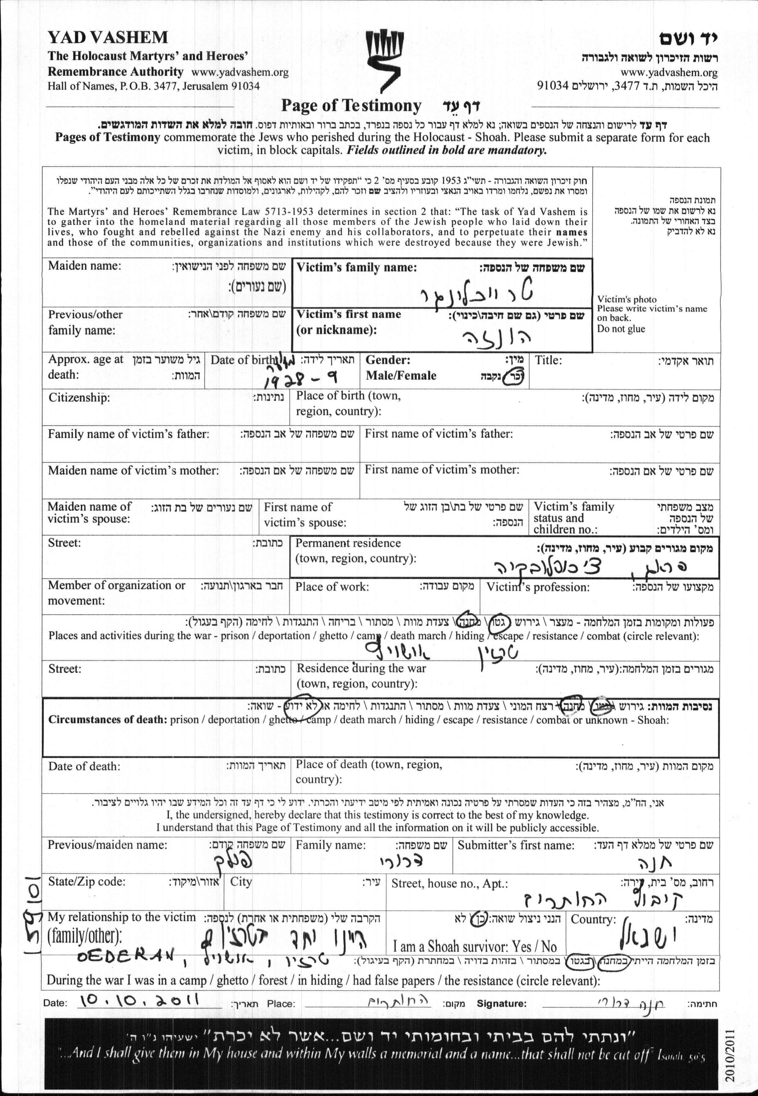 Juden wurden in der Schoah auf verschiedenste Weisen ermordet, unter anderem: Vergasen, Erschiessen, lebendig verbrannt werden, lebendig begraben werden, Tod durch Erschöpfung durch Zwangsarbeit, Epidemien, mangels jeder hygienischer Bedingung oder dem Fehlen medizinischer Versorgung. Manche Juden nahmen sich das Leben, um der Festnahme und weiterer Verfolgung zu entgehen oder ihr hoffnungsloses, nicht nachlassendes Leiden zu beenden.