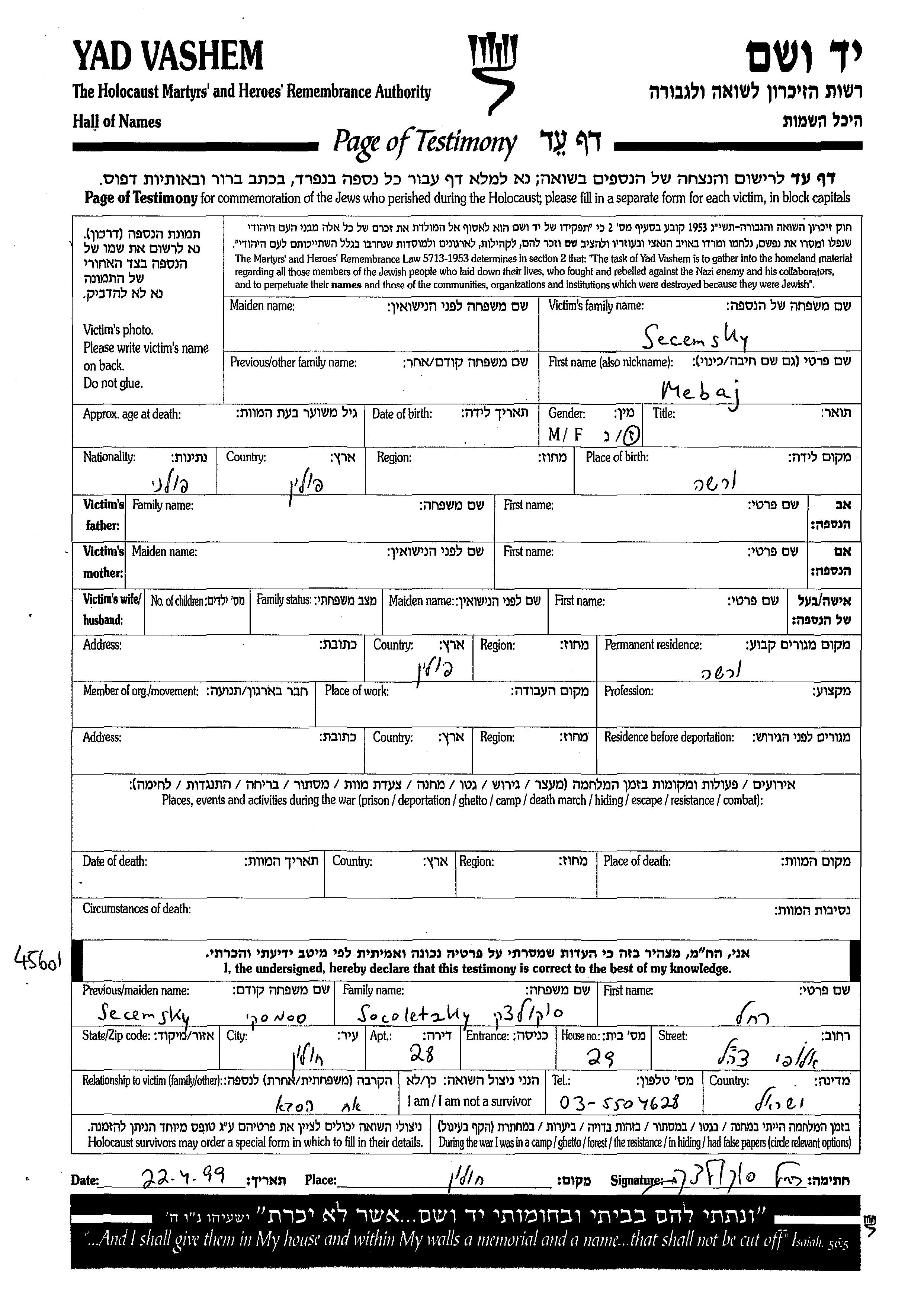 Während des Krieges/Schoah: