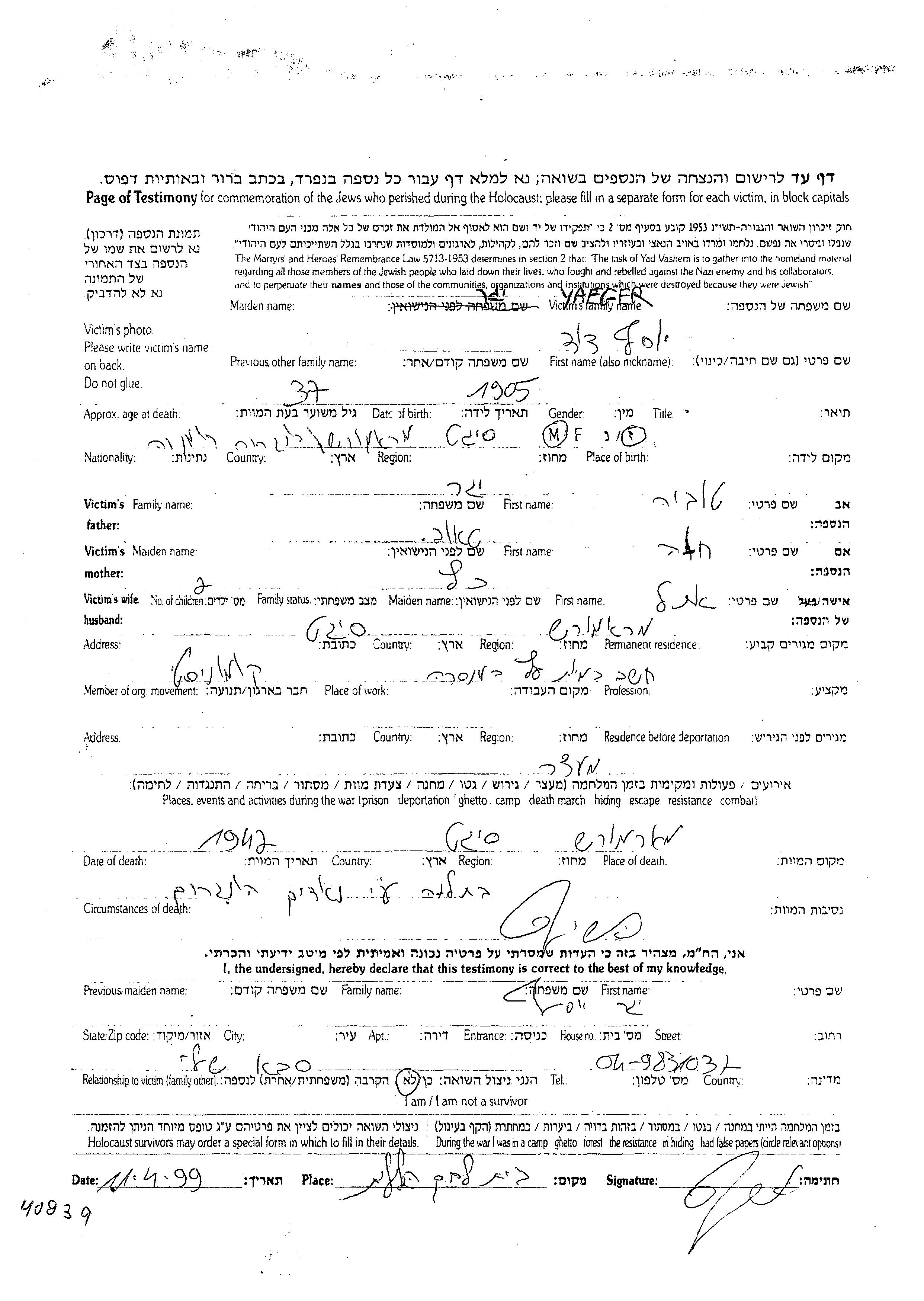 Yosef David wurde in der Schoah ermordet. Todesort: Siget, Rumänien im Jahr 1942.