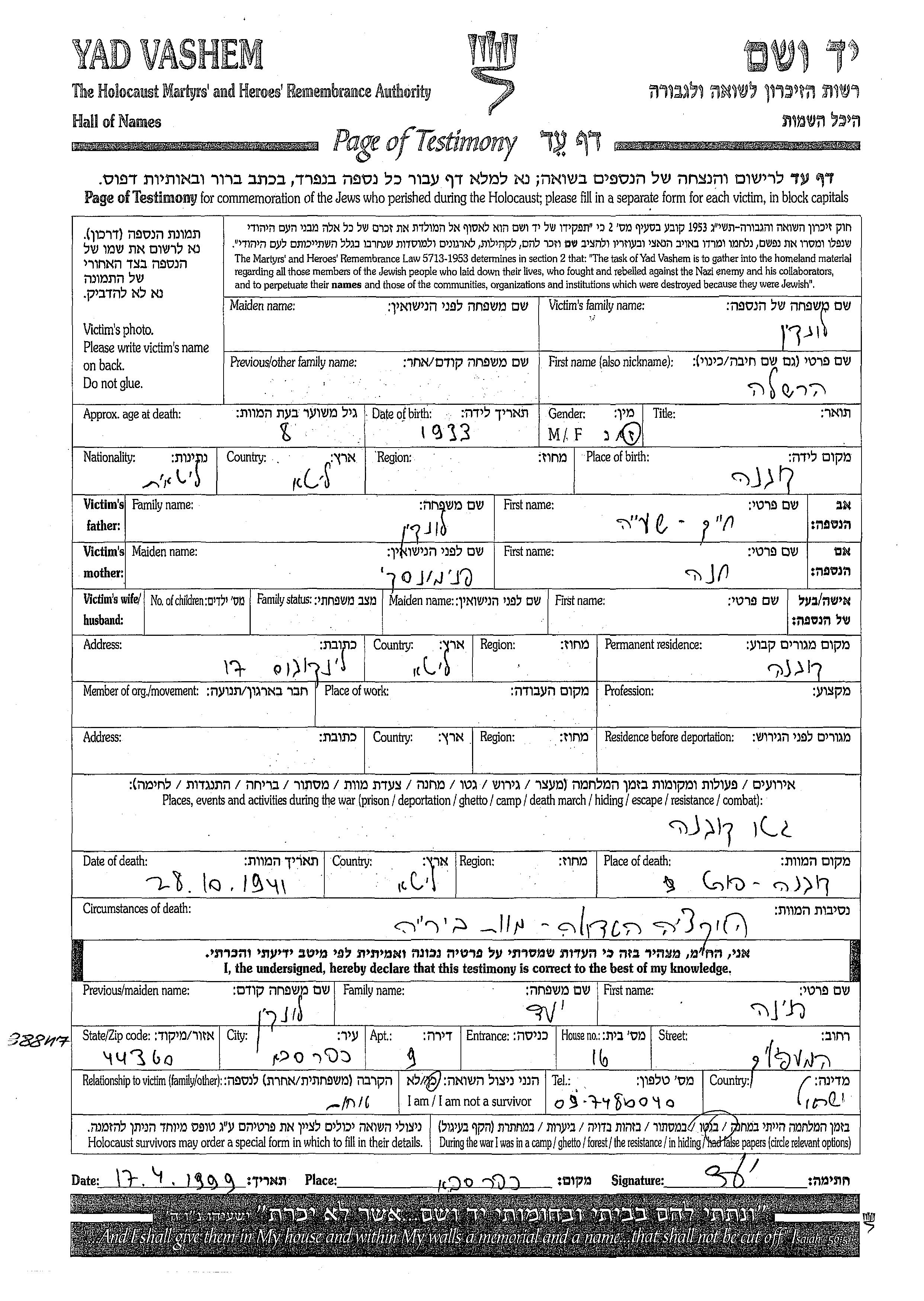 Hershele wurde in der Schoah ermordet. Todesort: Kowna, Litauen im Jahr 28/10/1941.