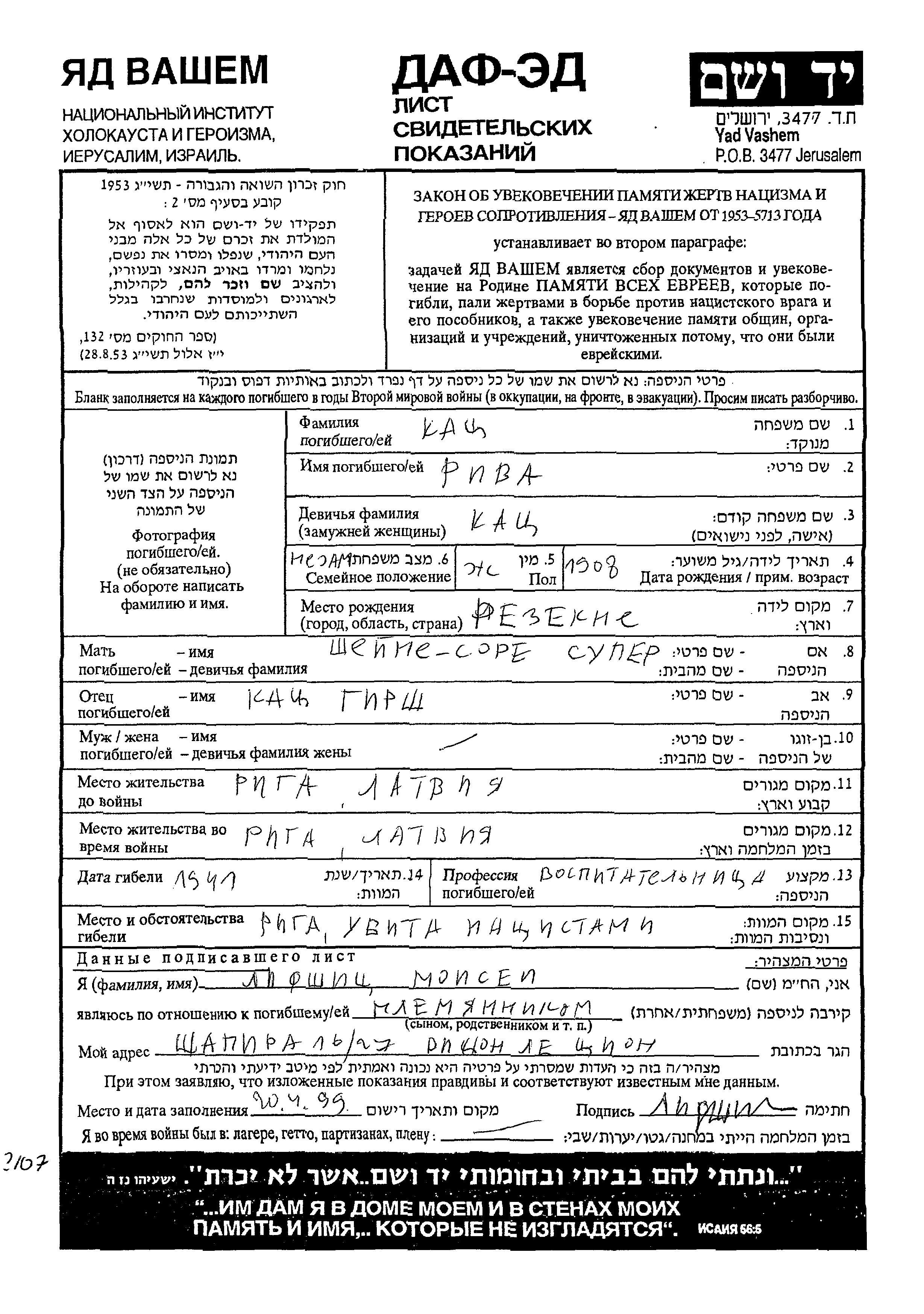 Riva wurde in der Schoah ermordet. Todesort: Riga, Lettland im Jahr 1941.