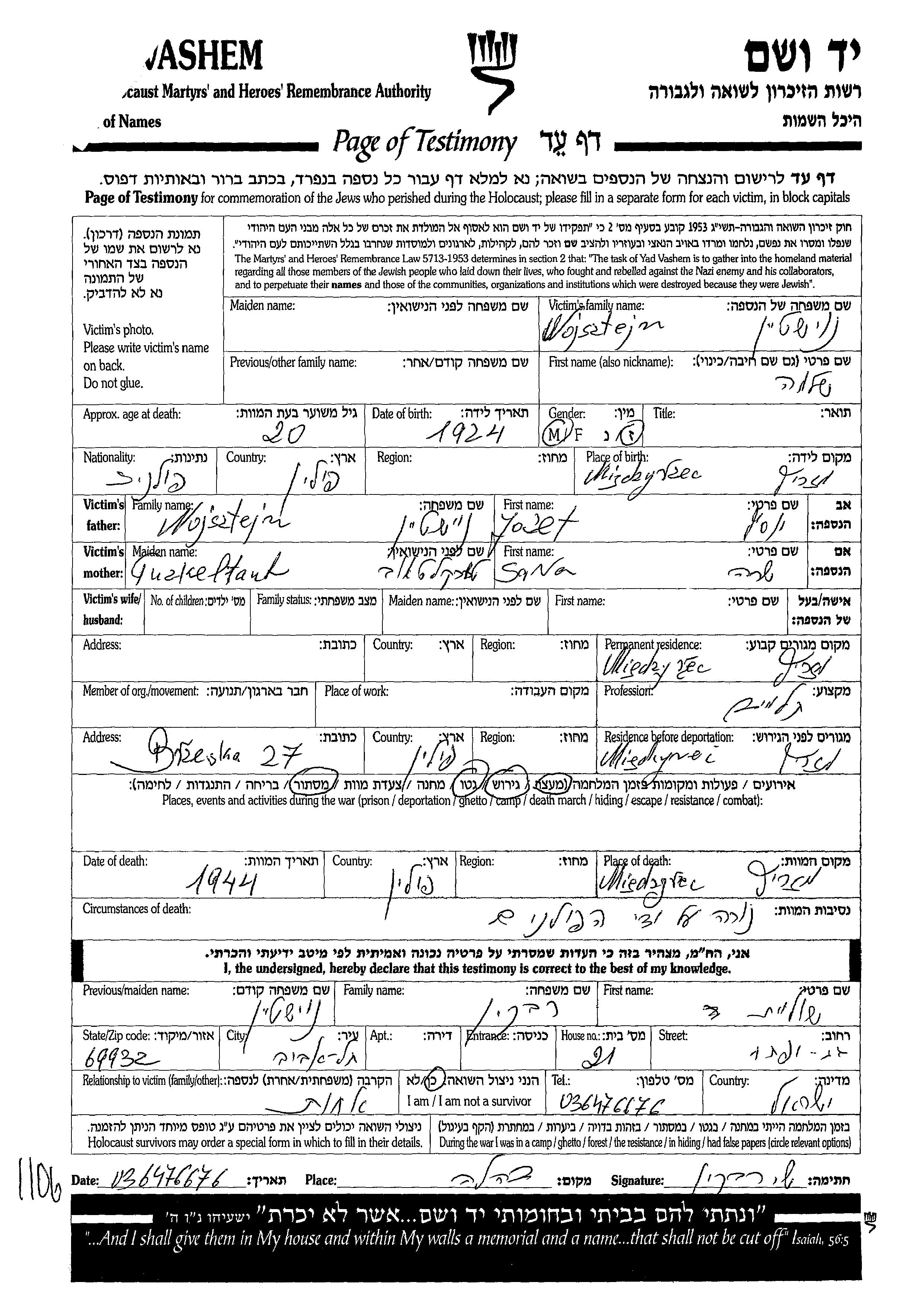 Shlomo wurde in der Schoah ermordet. Todesort: Mizrycz, Polen im Jahr 1944.