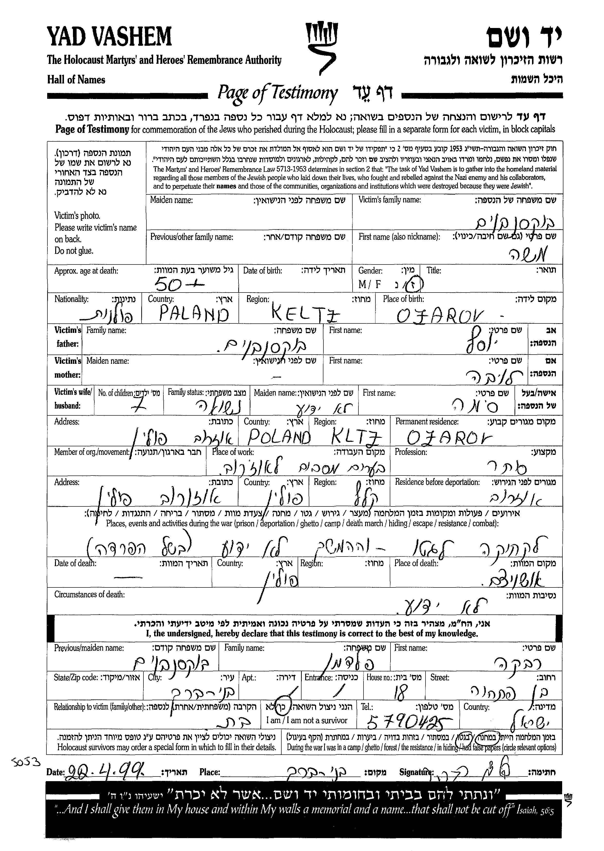 Moshe wurde in der Schoah ermordet. Todesort: Auschwitz, Polen.