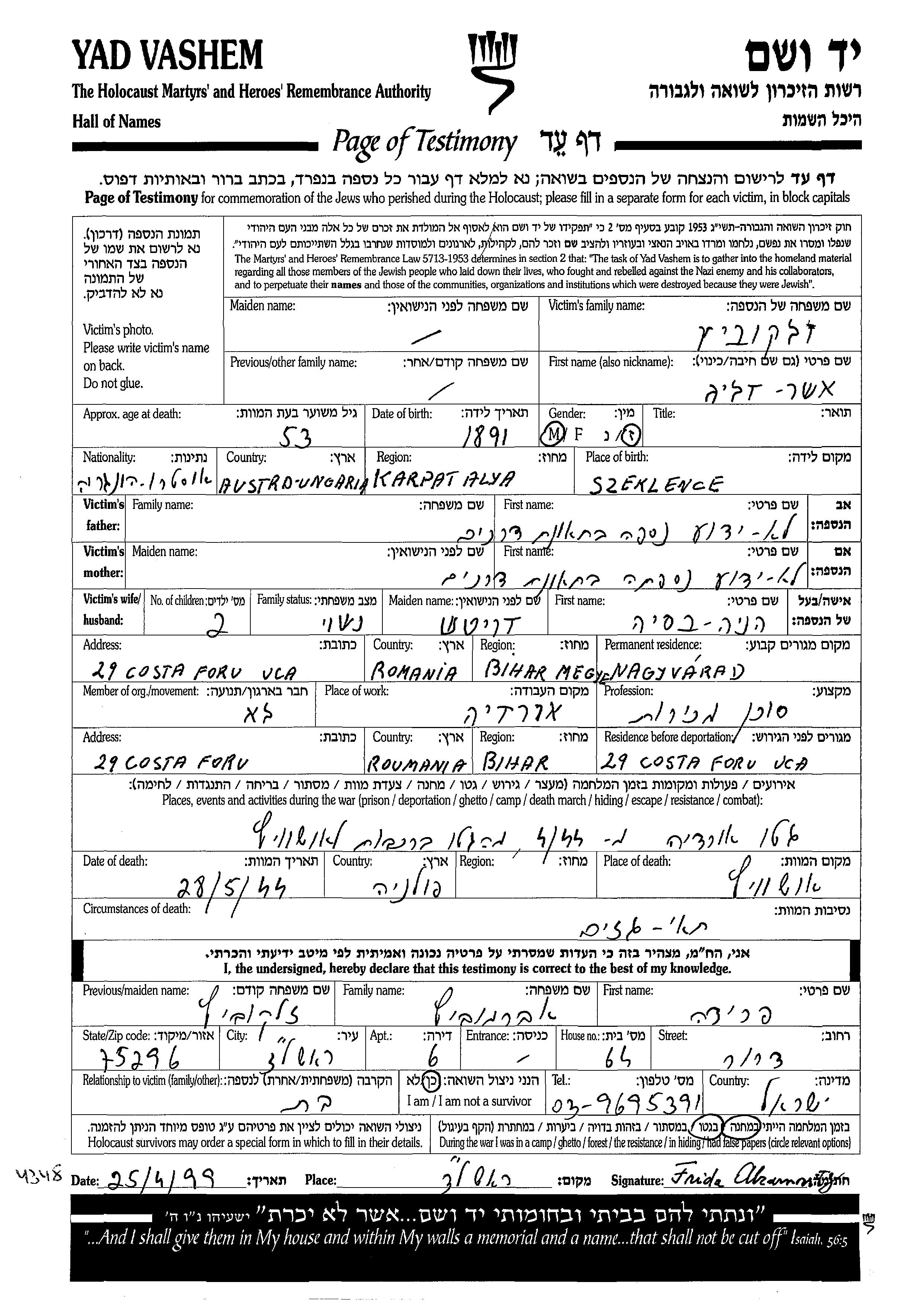 Suche nach einem Todesjahr im Zeitraum der Holocaust: 1933 bis 1945. Bitte wählen Sie 'Exakt' im Auswahlmenü, um nur nach einem einzelnen Jahr zu suchen, alternativ können Sie die flexibleren Optionen '+/- 2 Jahre' oder '+/- 5 Jahre' wählen.