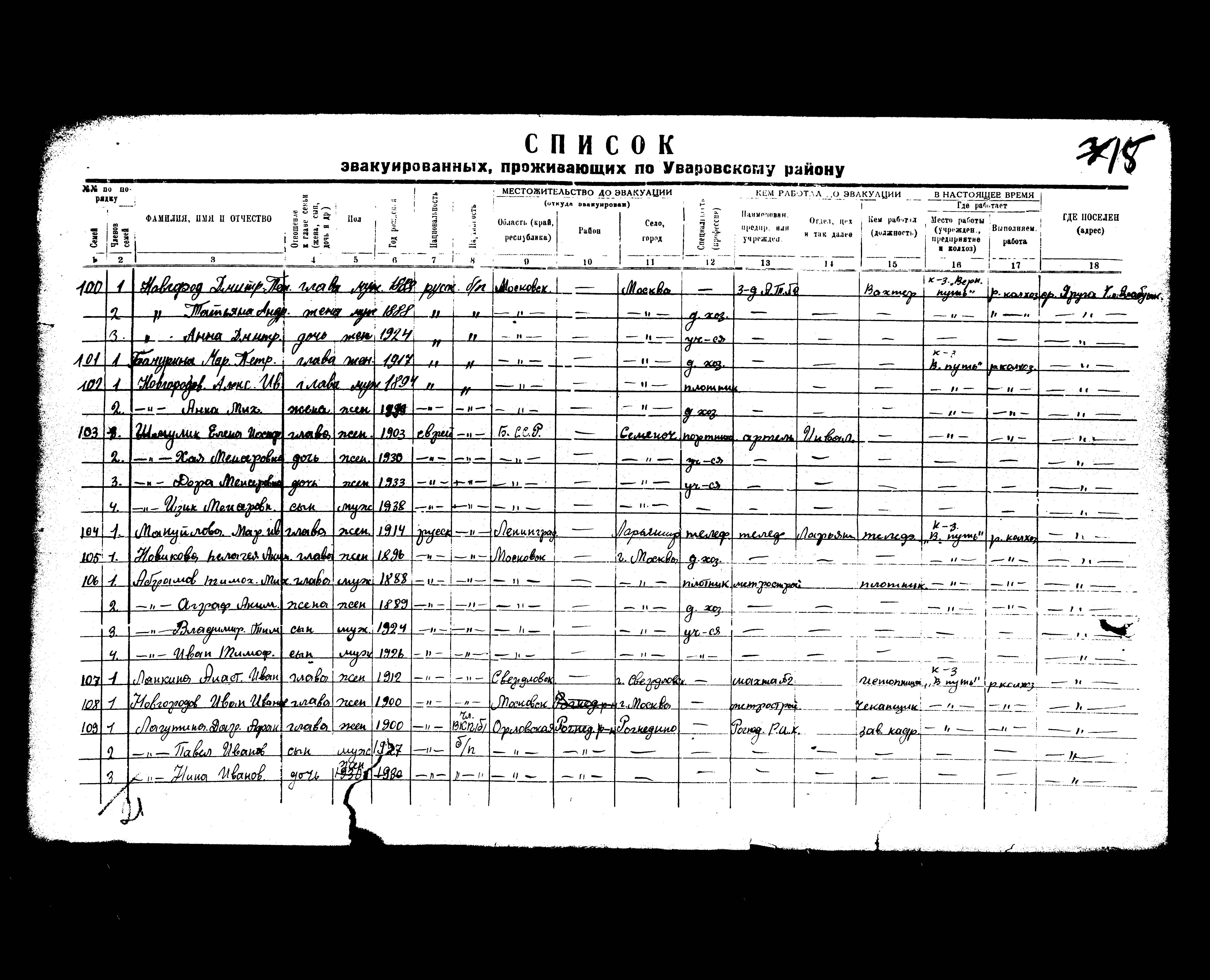 Was Registered Following the Evacuation/ in the Interior of the Soviet Union
