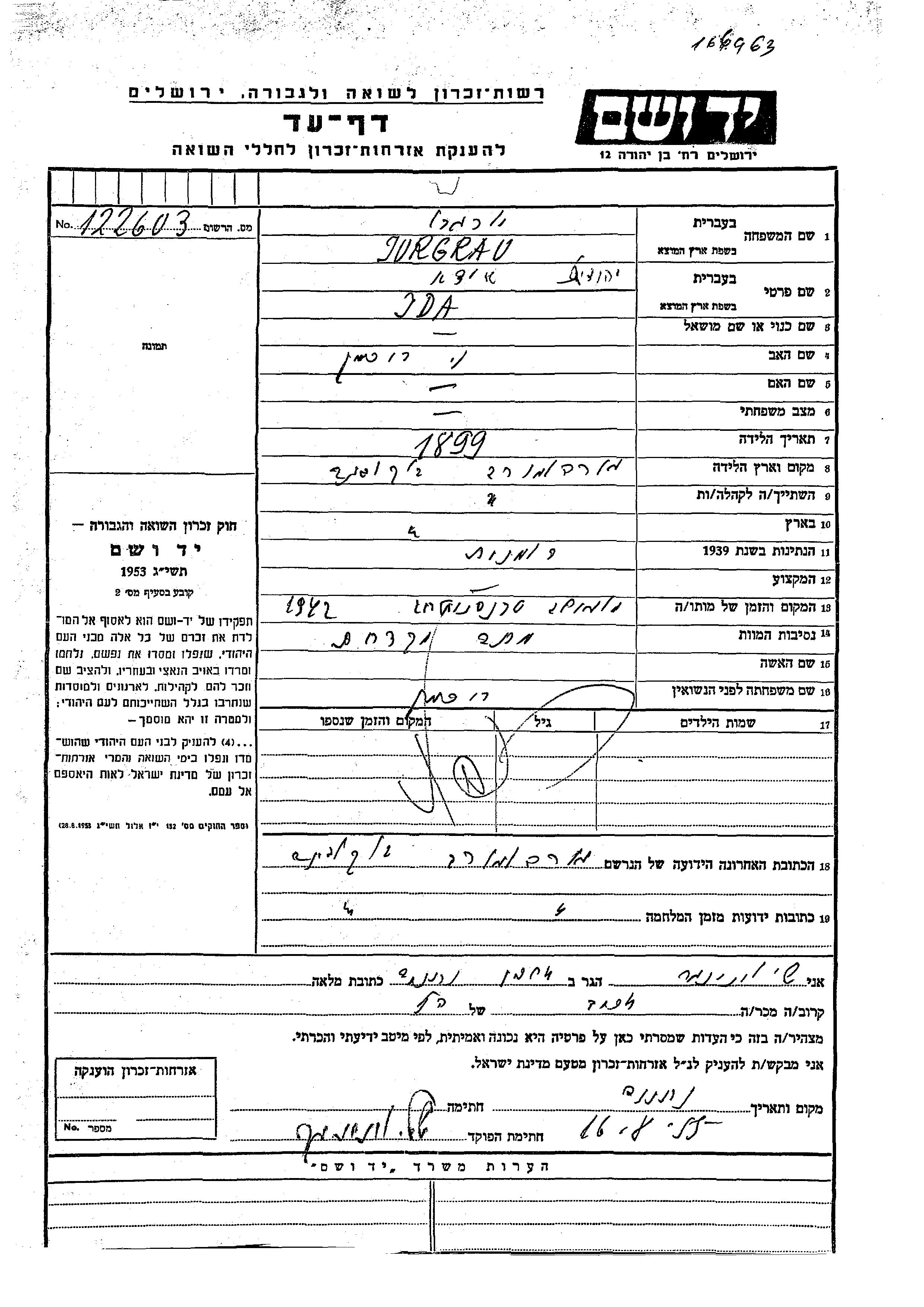 | Iurgrau | Ida Yehudit | 1899 | Gura Humora, Romania | Page of Testimony |