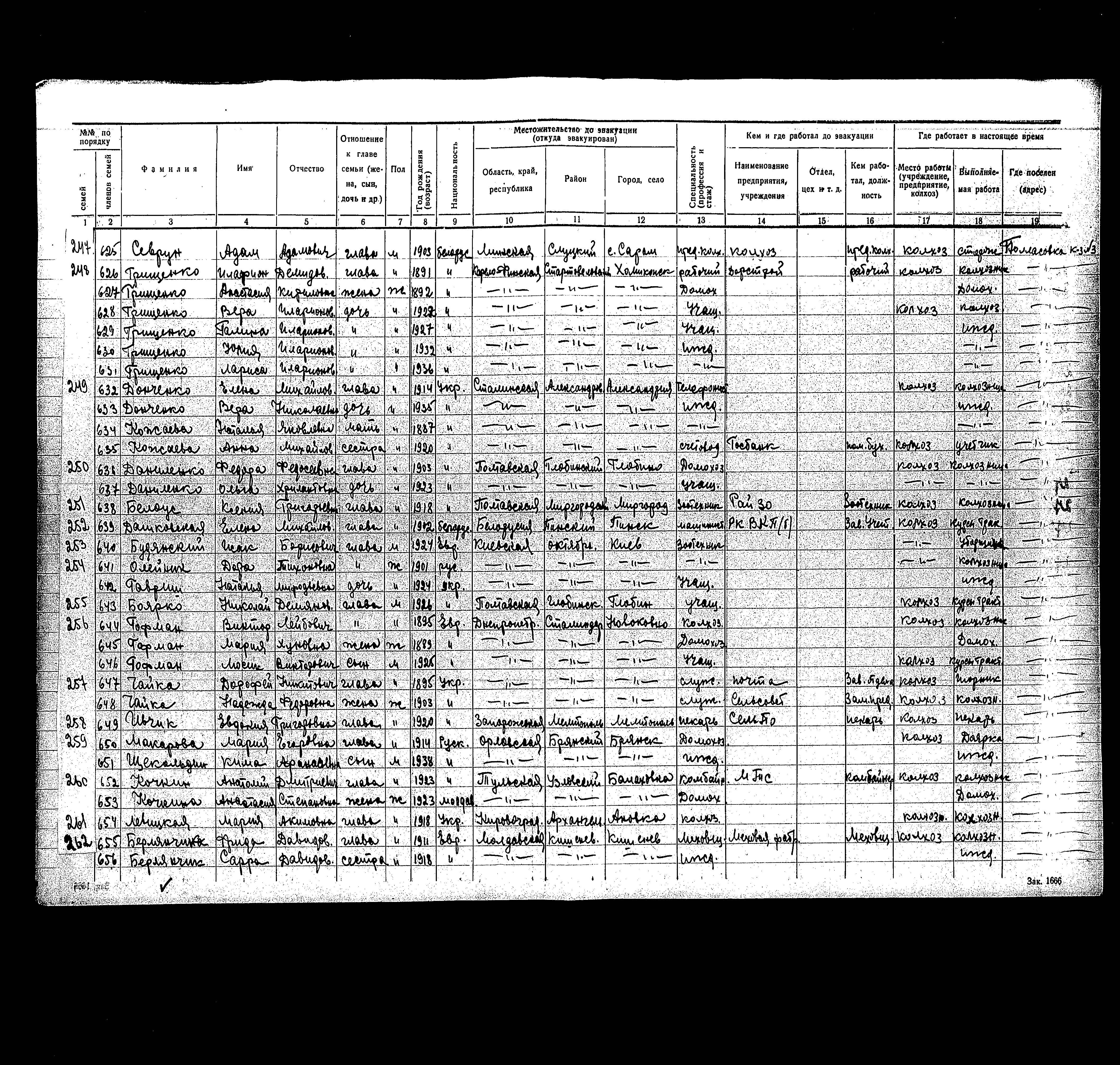 Viktor Gofman was born, 1895 to Leyb. He was a kolkhoznik / kolkhoznitza and married to Maria. Prior to WWII he lived in Novo Kovno, Ukraine (USSR). During the war he was in Pallasovka, Russia (USSR). Viktor was registered following the evacuation/ in the interior of the Soviet Union.