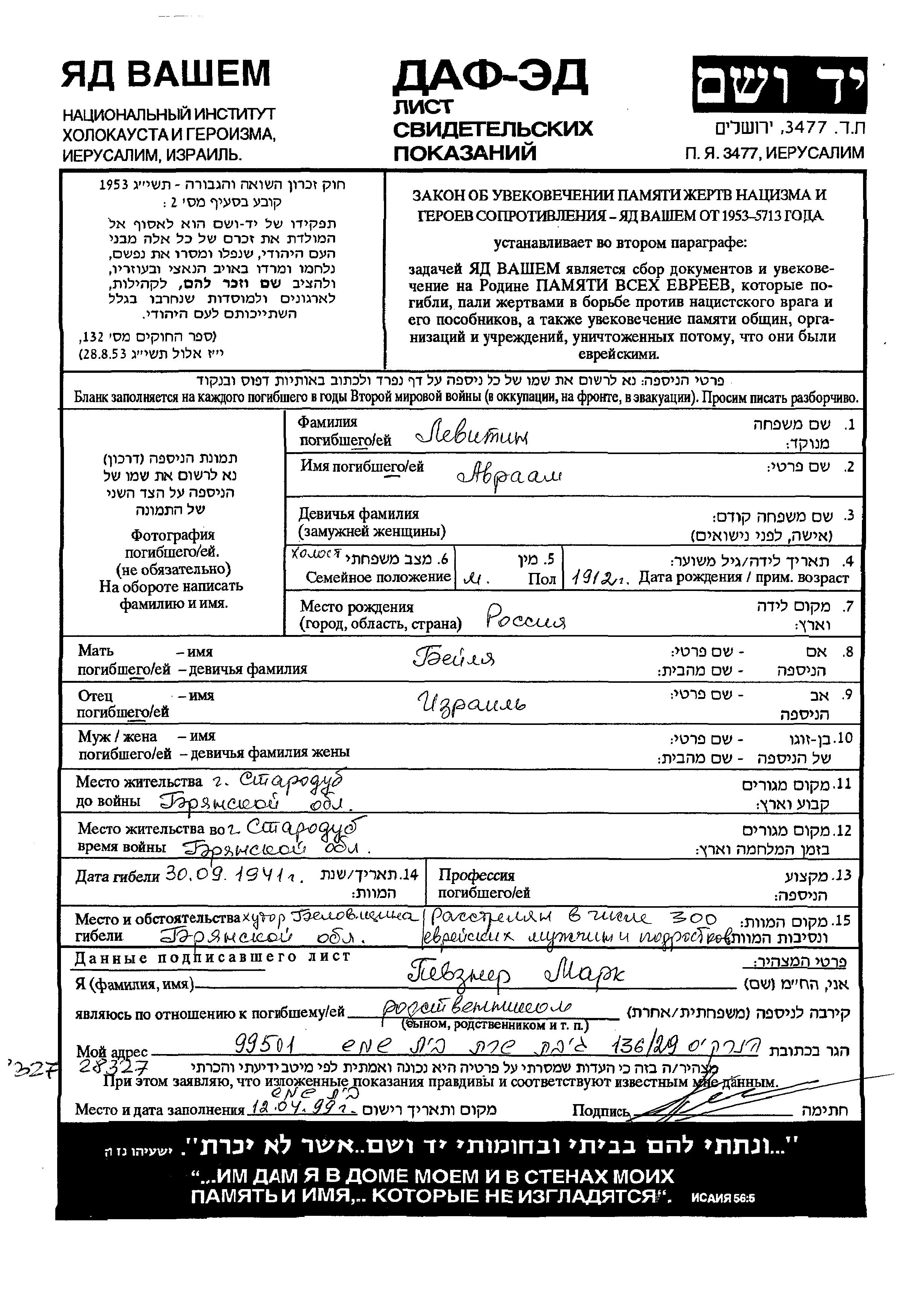 Search by last name of the submitter of the Page of Testimony, including diminutives or nicknames