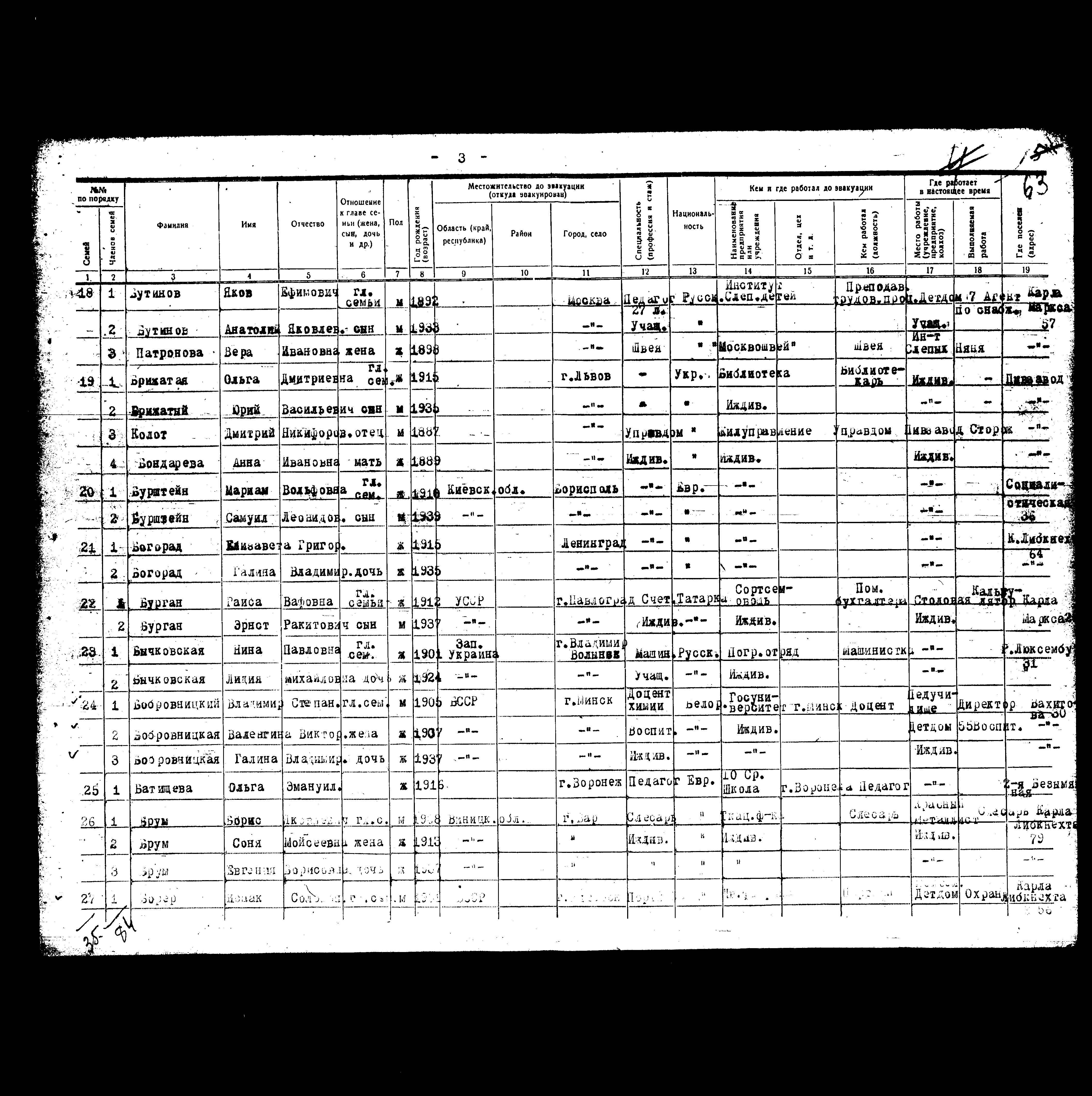 Burshteyn Mariam 1910 Borispol, Ukraine (USSR) List of evacuated persons