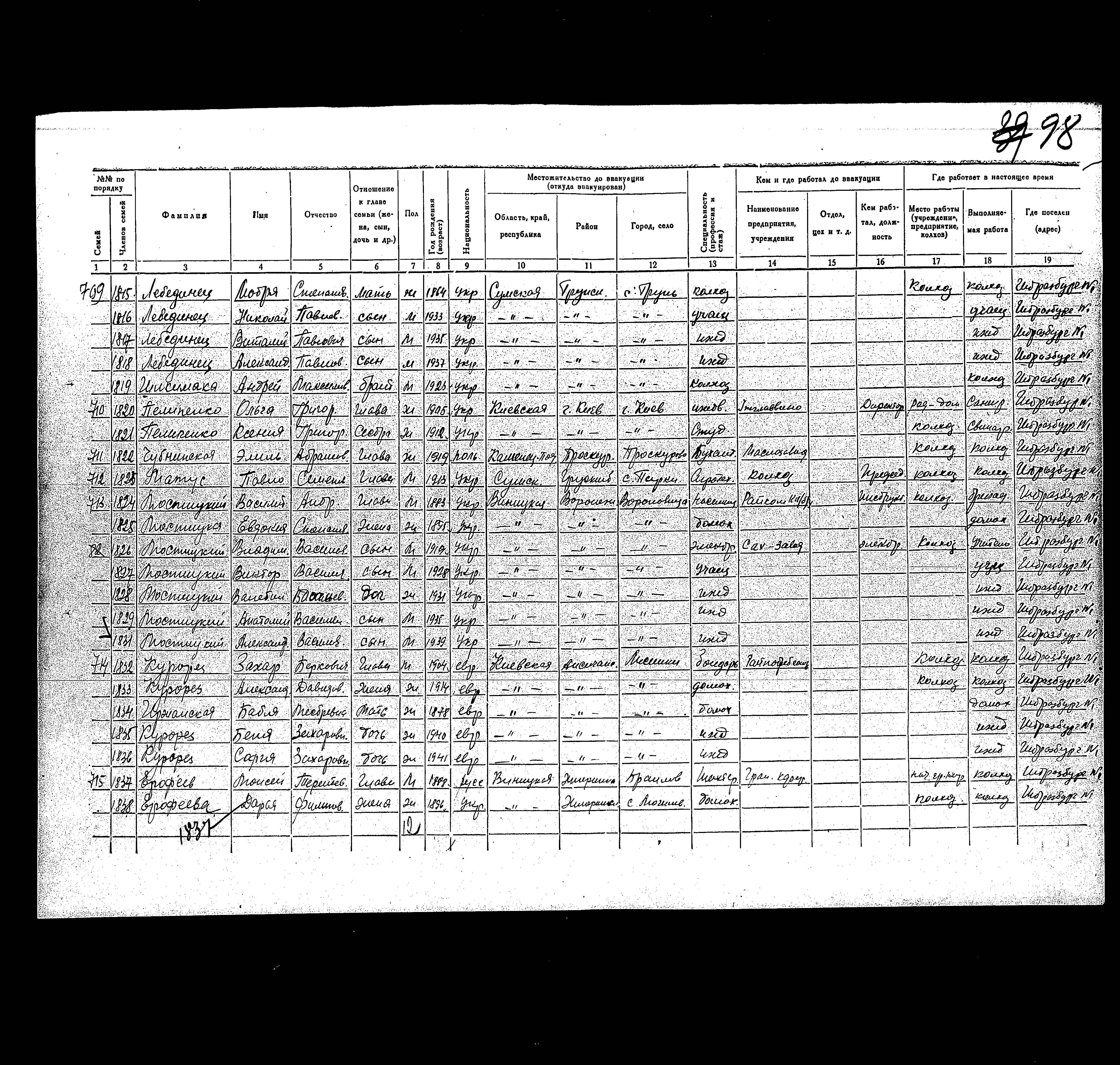 Zakhar Kurorez was born, 1904 to Berko and Bablya nee Irzhanskaya. He was a cooper and married to Aleksandra. Prior to WWII he lived in Lisyanka, Ukraine (USSR). During the war he was in Pallasovka, Russia (USSR). Zakhar was registered following the evacuation/ in the interior of the Soviet Union.