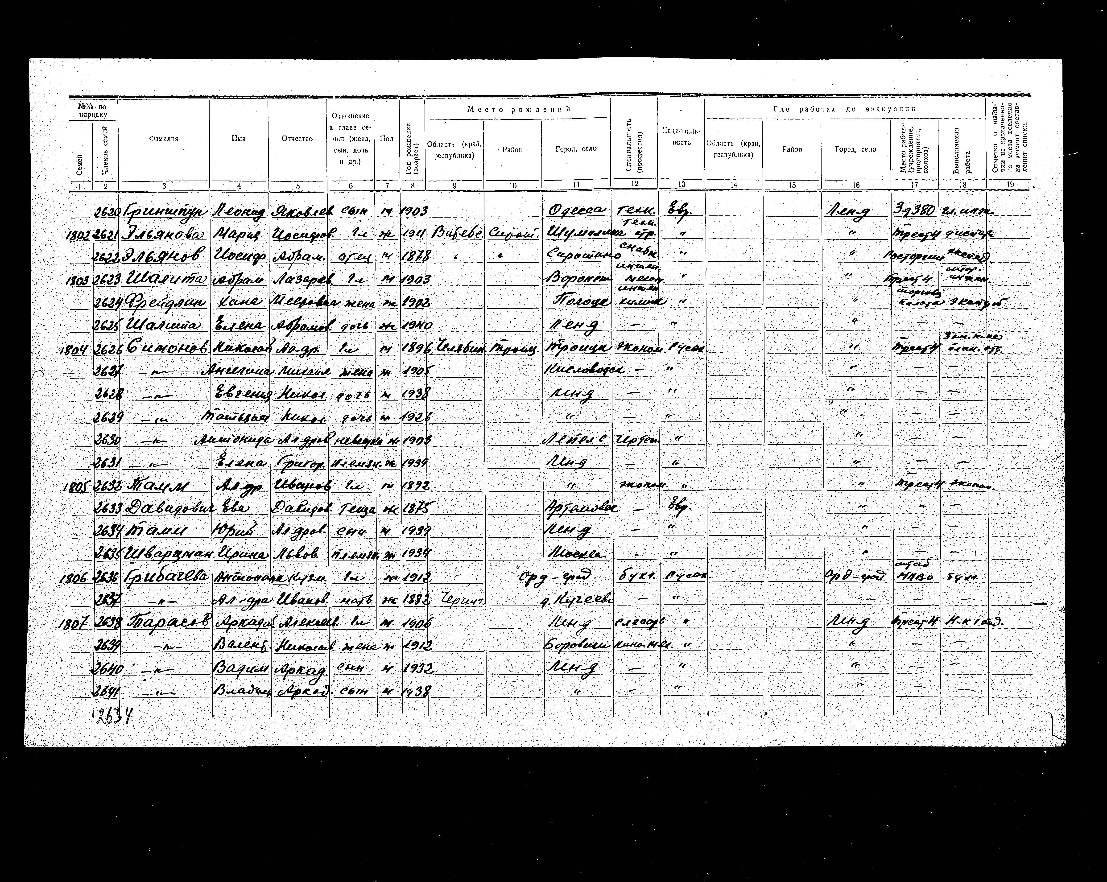 Iosif was registered following the evacuation/ in the interior of the Soviet Union.