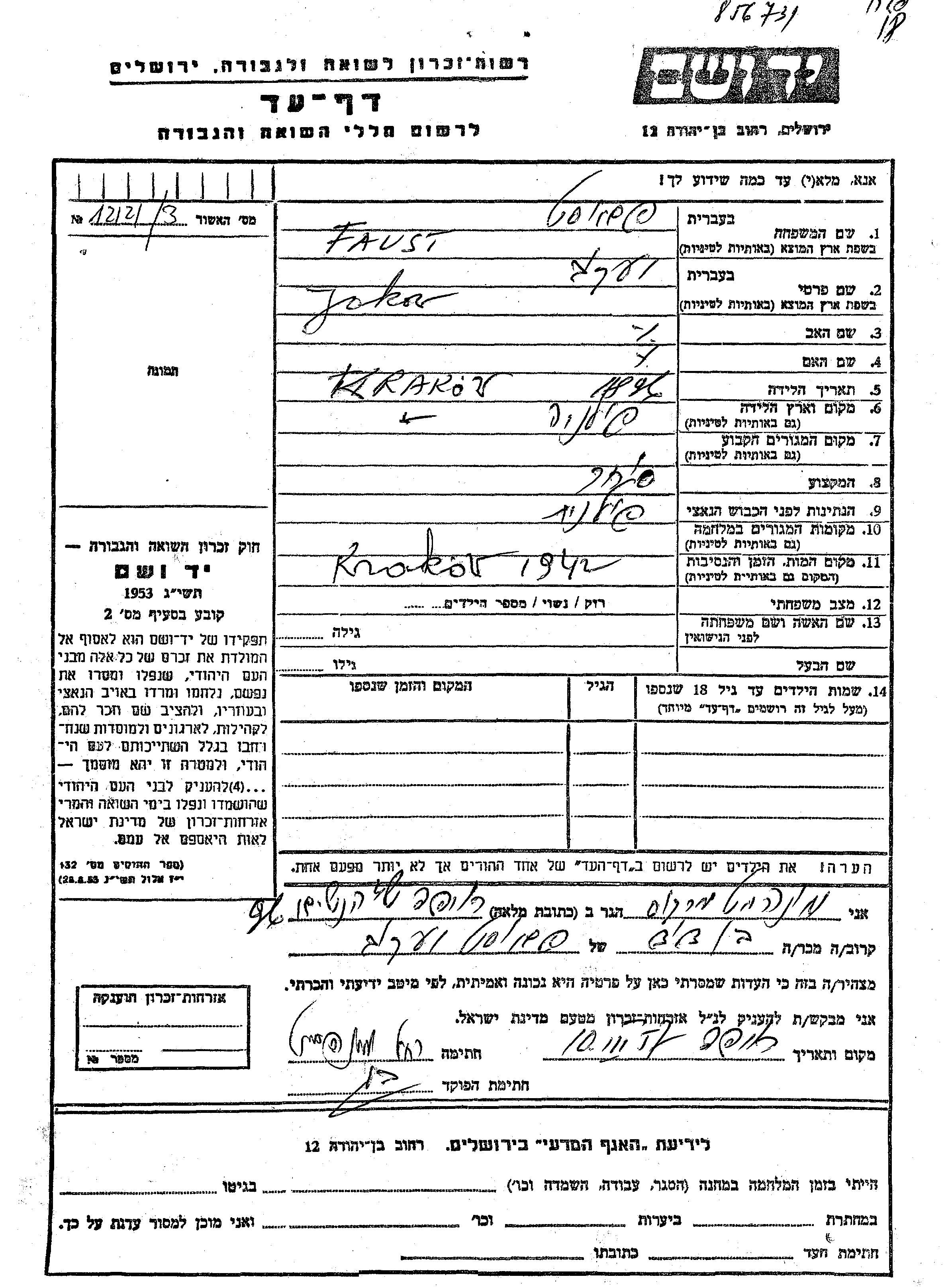 Jokov Faust was born in Krakow, Poland, 1896. He was a merchant.