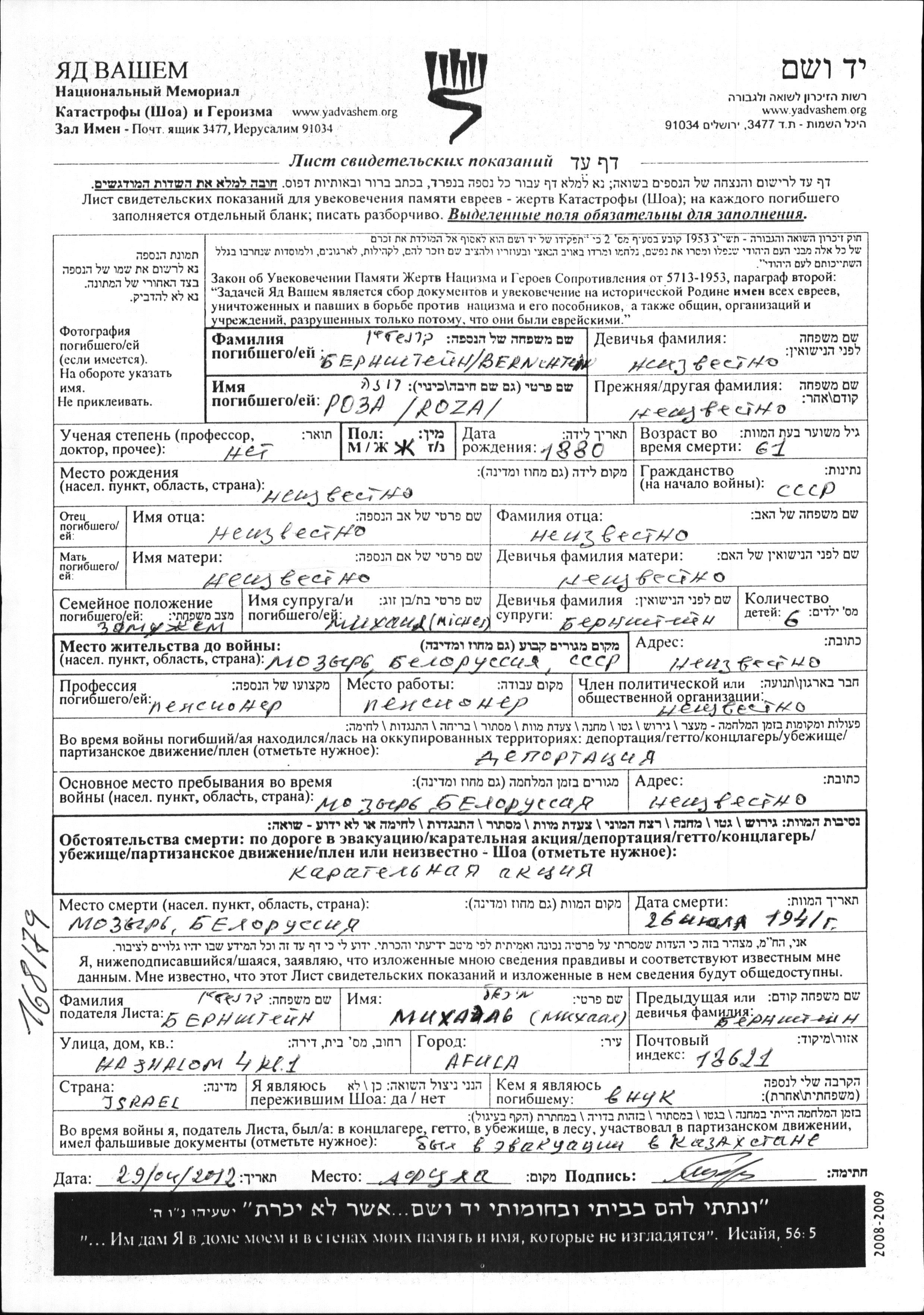 Yad Vashem - Pages of Testimony Names Memorial Collection